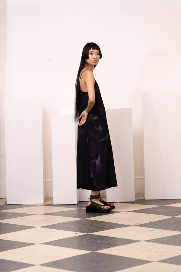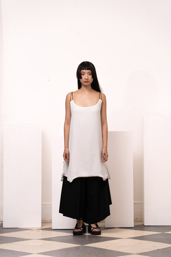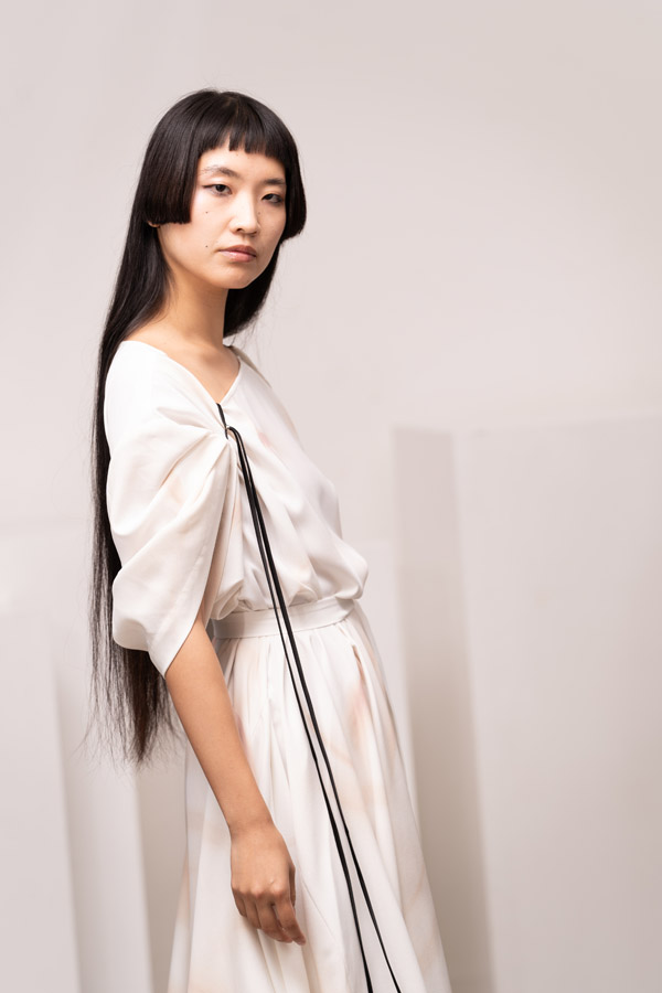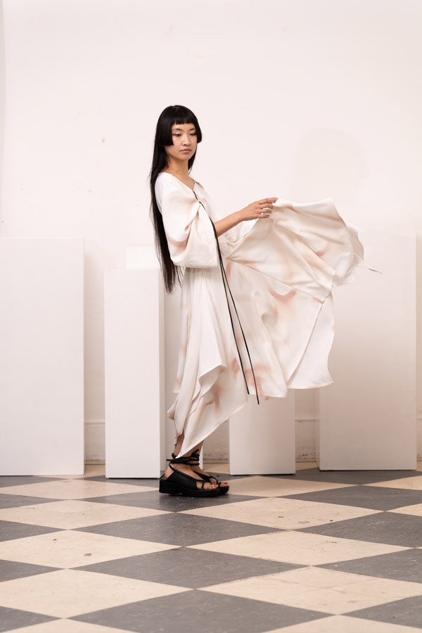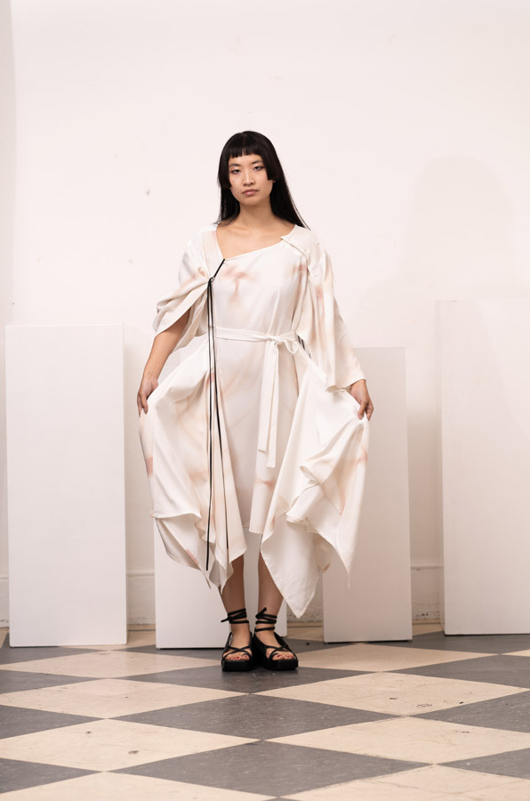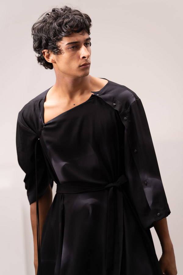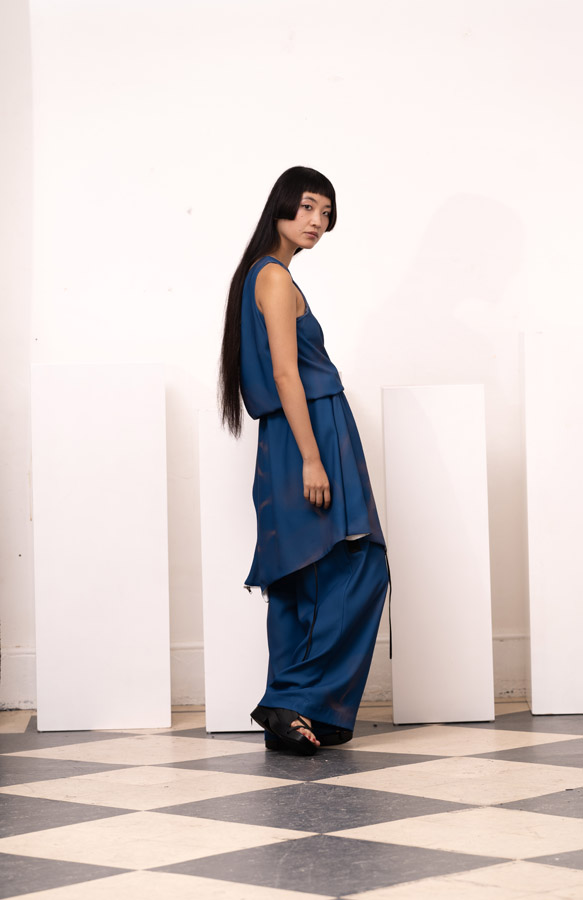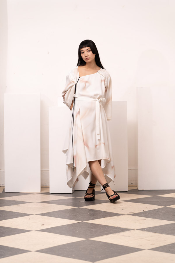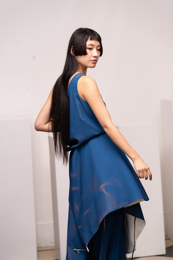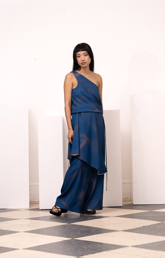 This season, Kuo Wei’s brain MRI images are reimagined and transformed into prints on the garments, creating a surreal yet meaningful vibe that echoes the brand’s abstract deconstruction approach. Beyond the prints, this collection also brings INF’s perspective on sustainable fashion to the forefront. Kuo Wei believes that while recycling old clothes and upcycling are great, he’s more interested in addressing fashion waste before it even happens. That’s why INF’s famous multi-wear series has reached its peak this season. Through innovative design, he gives a single garment multiple ways to be worn, such as turning a bag into a T-shirt or a skirt into pants. “By giving clothes multiple identities, we’re offering more than just a fashion item. Besides being stylish and functional, we hope it can adapt to various occasions and accompany the wearer for a long time, thereby reducing fashion waste.