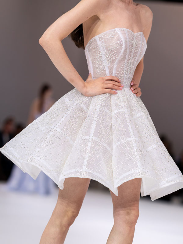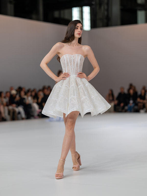 Martin Kristensen’s new bridal collection is romantic and full of dramatic designs. He was inspired by famous designers like Holger Blom and the classic styles of the Victorian era, including old-fashioned corsets and hooped skirts. Each dress is made to show off the beauty of the female body, using sharp lines, careful detailing, and elegant shapes.