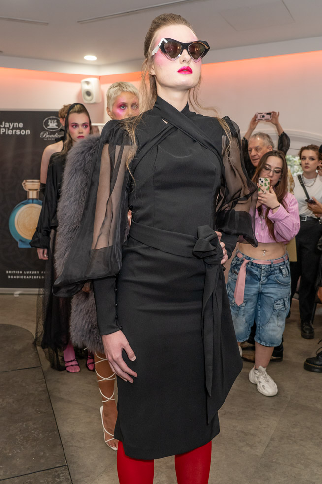 Collaboration has always been integral to the fashion industry, and for this collection, JAYNE PIERSON partnered with nuForj as Project Manager, Boadicea The Victorious perfumes and Ffineyewear, enhancing the overall experience of the runway show with captivating soundtracks and choreography.
