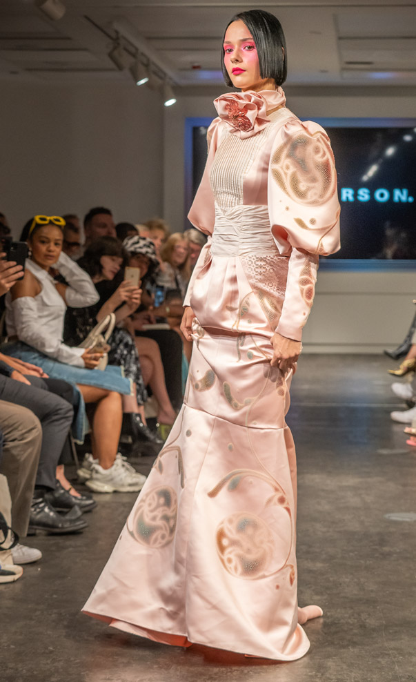 Inclusivity was another cornerstone of the Ceridwen collection. PIERSON emphasized that every garment is entirely bespoke and made to order, accommodating diverse body types and identities, reflecting the brand’s dedication to celebrating individuality.