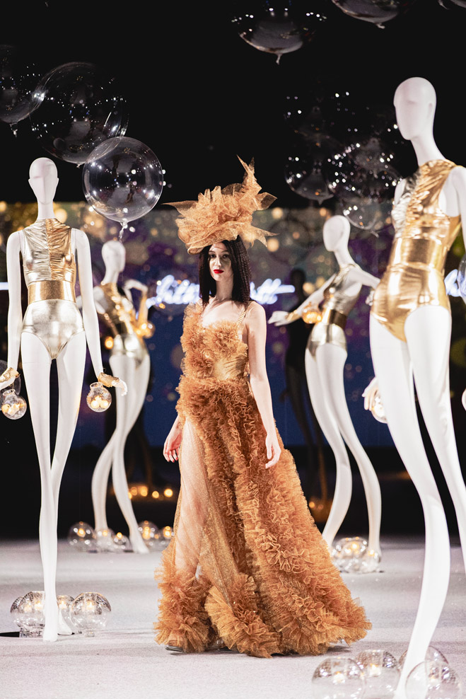 The golden collection by Jitka Klett Couture is a reference to the harmonious combination of the golden colour and the feminine silhouette.
