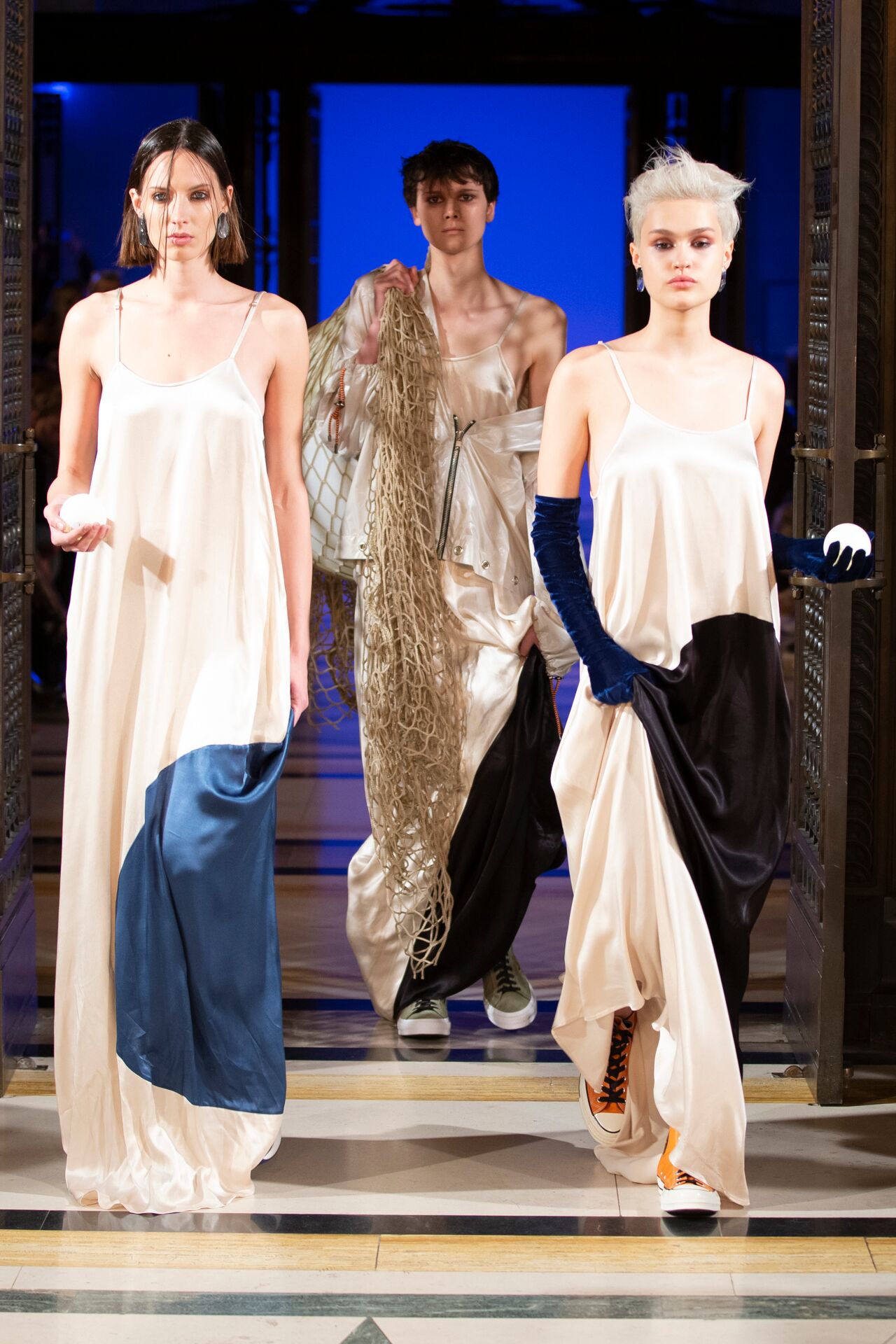 This season, JOLIIN WU has created a collection for everyone. Mixing womenswear with her first menswear collection, Wu breaks the boundaries of the runway in an attempt to speak to a wider audience. The AW19 collection attempts to establish a simultaneous coexistence between mens’ and womenswear, while interpreting the world of the future from the perspective of both sexes. Not explicitly aiming for gender neutrality, AW19 aims to convey the importance of every individual, and the future preservation of their own unique style.