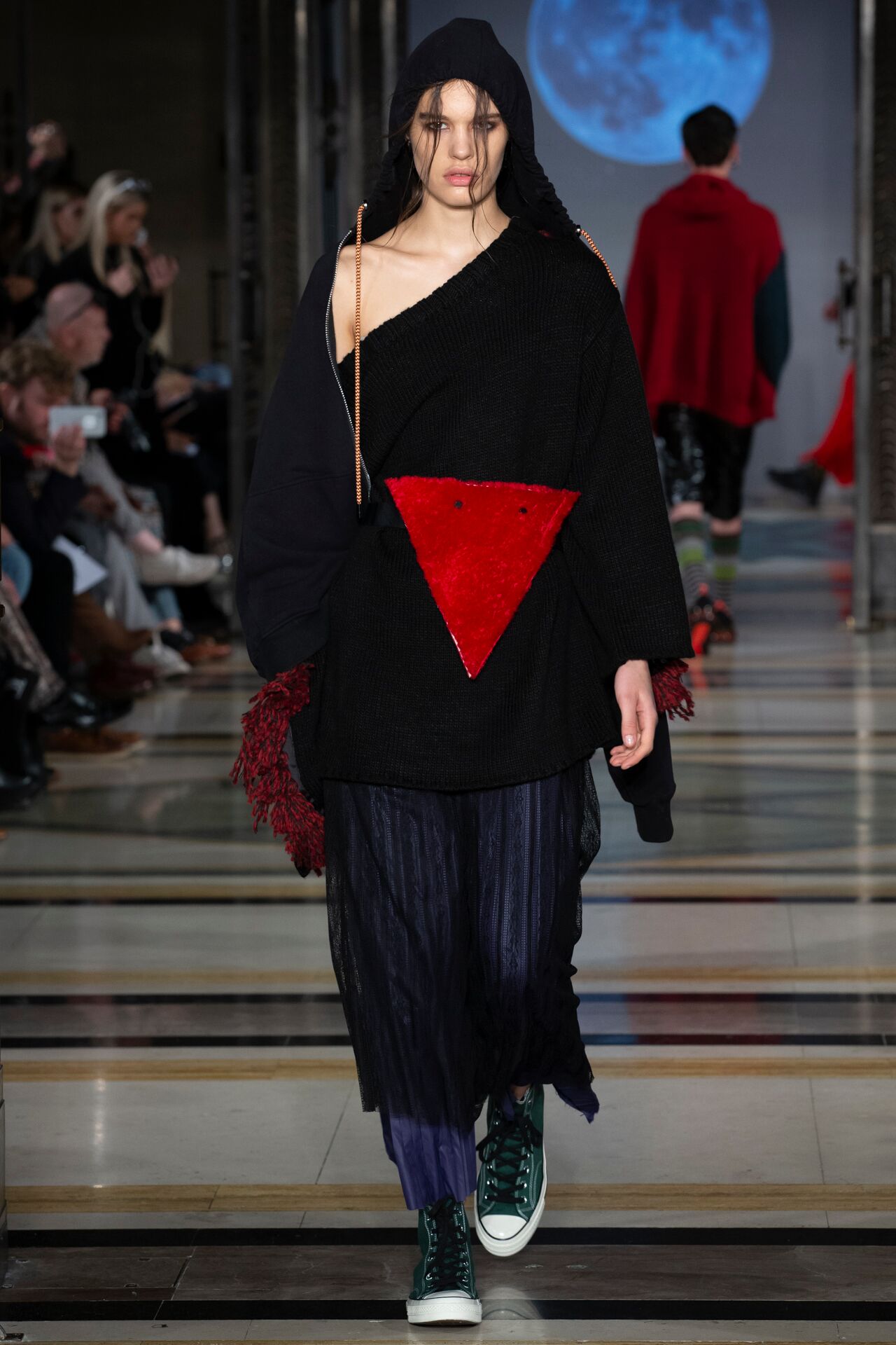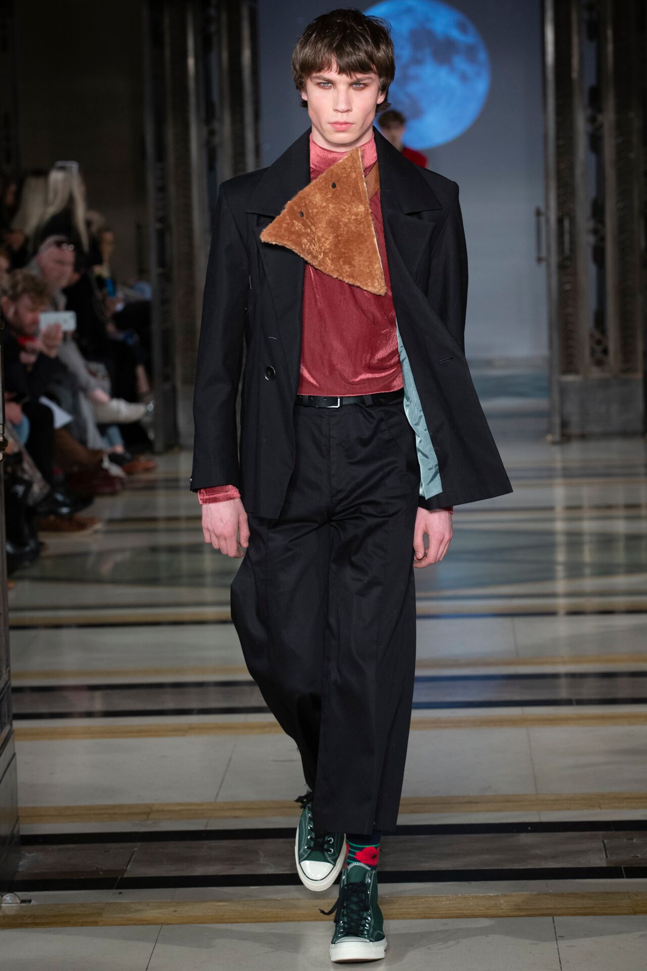 This season, JOLIIN WU has created a collection for everyone. Mixing womenswear with her first menswear collection, Wu breaks the boundaries of the runway in an attempt to speak to a wider audience. The AW19 collection attempts to establish a simultaneous coexistence between mens’ and womenswear, while interpreting the world of the future from the perspective of both sexes. Not explicitly aiming for gender neutrality, AW19 aims to convey the importance of every individual, and the future preservation of their own unique style.