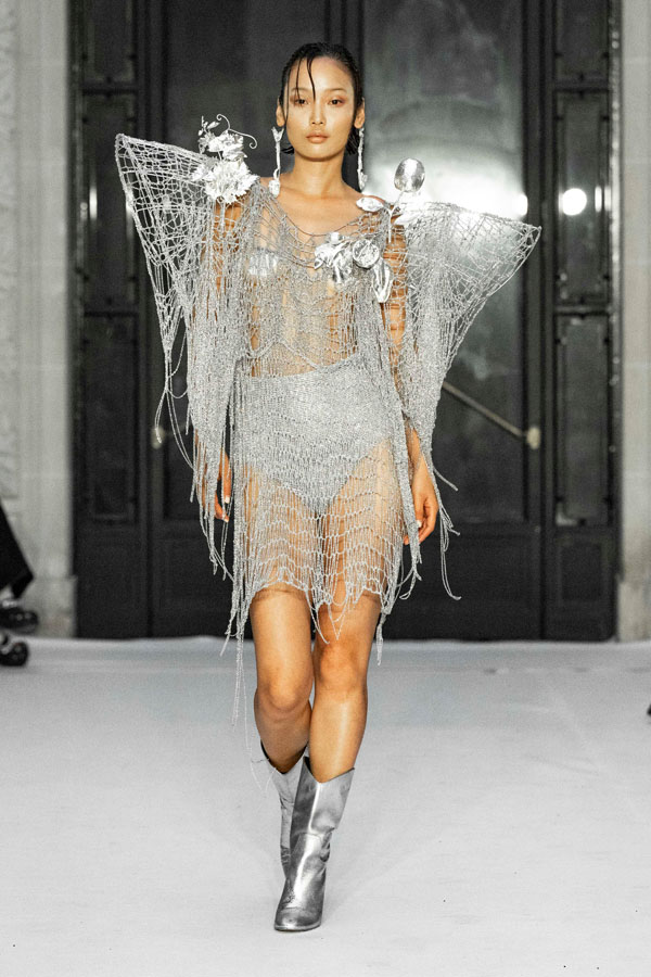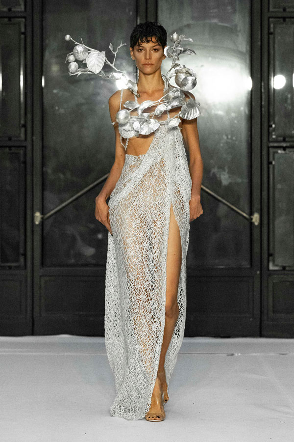 The symbol of temptation by excellence, the fruit of sin, will also be present in the collection in a way of abundance. Feathers, Chantilly lace that adapts to the body and gauze, like veils that seems to sink. The feminine silhouette and the insinuating transparency, insanely close to desire and beauty, are the main aspects of this collection.