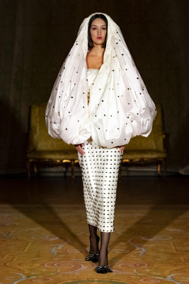 The designs have the unmistakable stamp of the firm: extra-large volumes in organza, guipure and lace, all in black, white and beige colors as background. A differentiating touch, the black and silver studs are defined in its flamenco polka dot, in a more glam and rocker version. The Reborn looks are complemented by five models from VOA Collective, the high-end eyewear brand that stands out for its avant-garde designs, made exclusively by artisans in Japan.