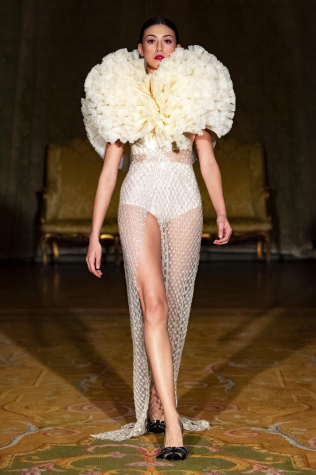 Inspired by spring, Reborn is a parallelism with the force that nature has to come back to life. Very elaborate fabrics, sometimes embroidered silk organza that is cut and, with a wiring system, creates flowers that sprout from the garments, nature in full explosion.”As a fighter and optimistic woman, I wanted this collection to be a