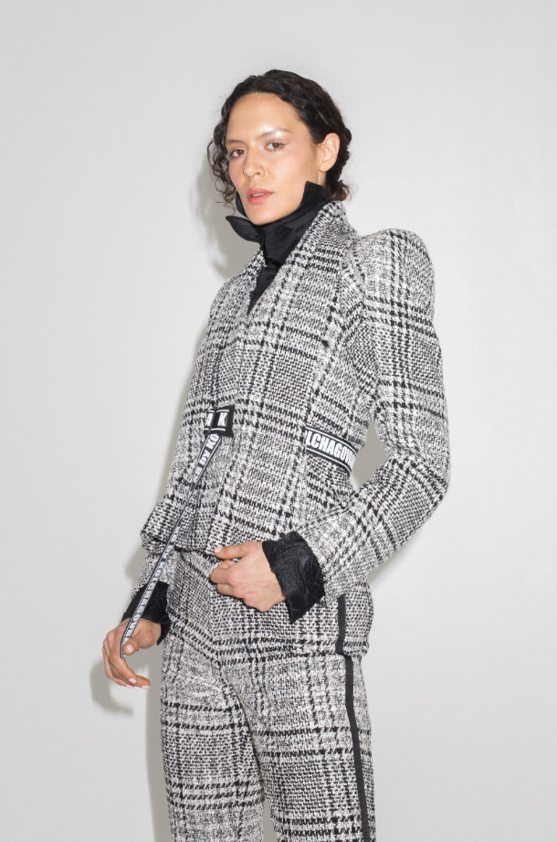 The colour palette of KB by KolchagovBarba is black and white with a splash of neon green – to represent our belief in the certainty of renewal and hope. Merging the soft lines of our couture heritage with streetwear detail, KB by KolchagovBarba is the first ready-to-wear collection which sees the addition of belts, tote bags and bum bags to our existing blend.