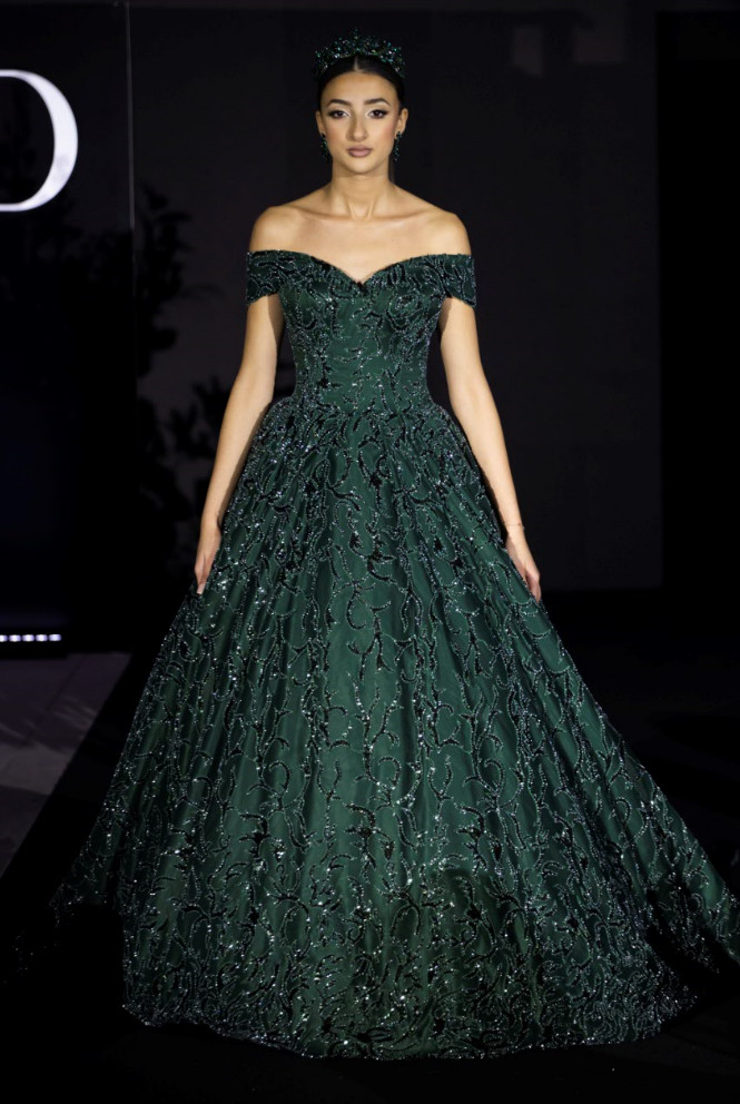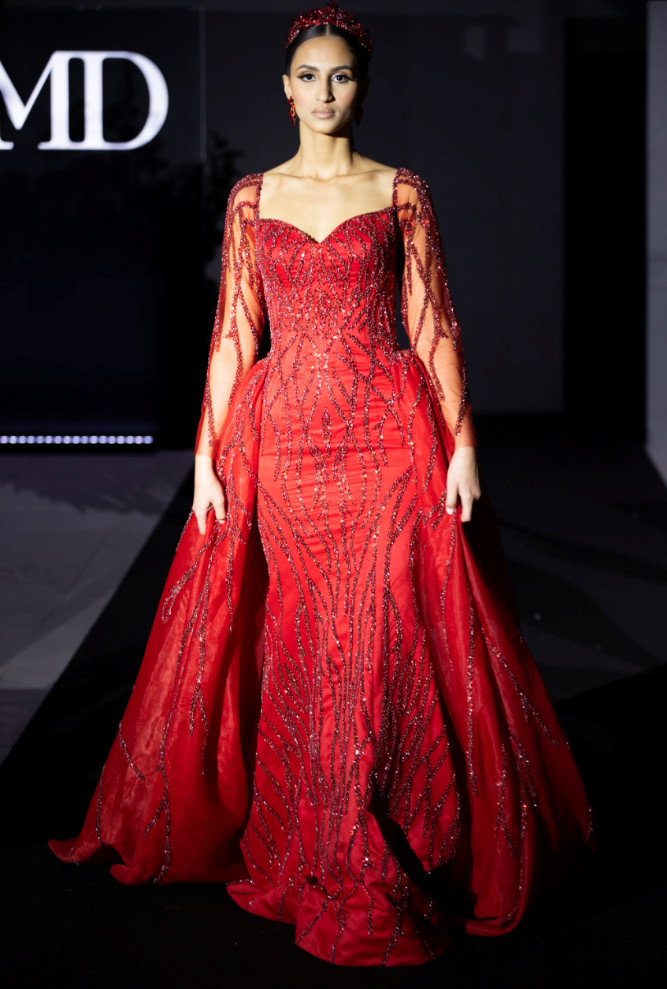 The “KMD” caftans are now famous for their originality, elegant silhouettes, shimmering colours, lavish fabrics, transparent laces, and sparkling embroidery with pearls and rhinestones.