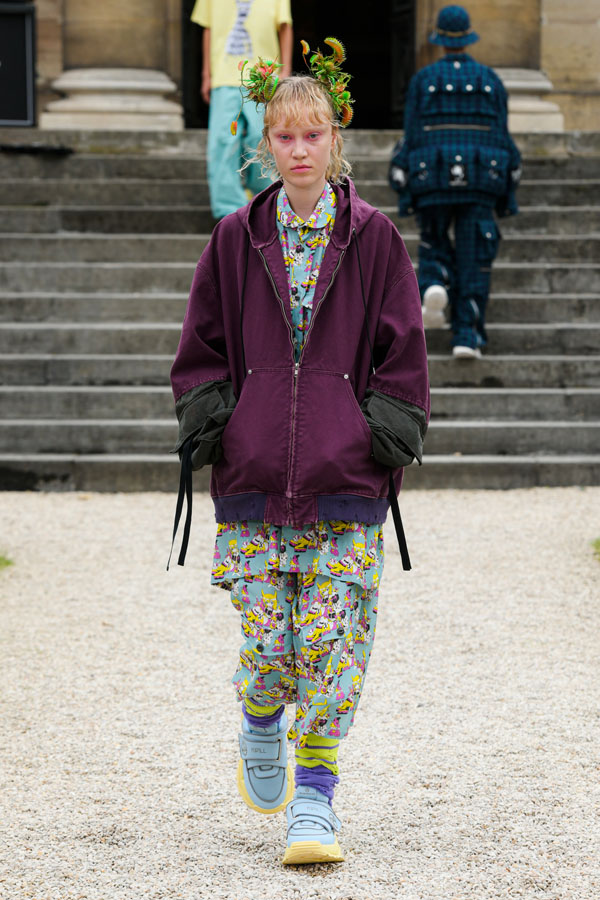 Inspired by his meeting and exchange with the musical duo Ho99o9, made up of theOGM & Yeti Bonnes, Hiroaki Suesayu declares : “I was impressed by the energy and attitude that emanate from their styles”. Indeed, this is the designer’s first collection inspired by people.