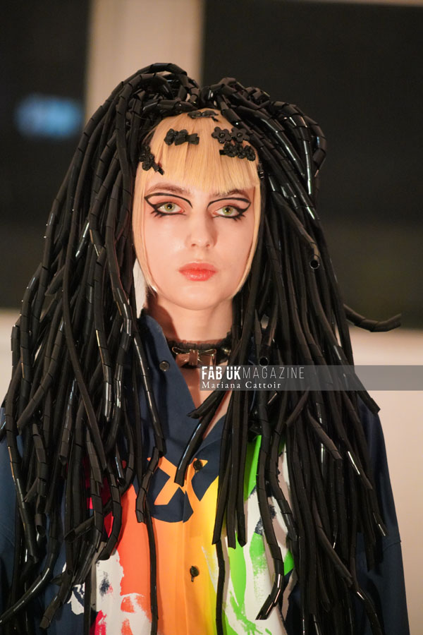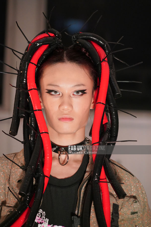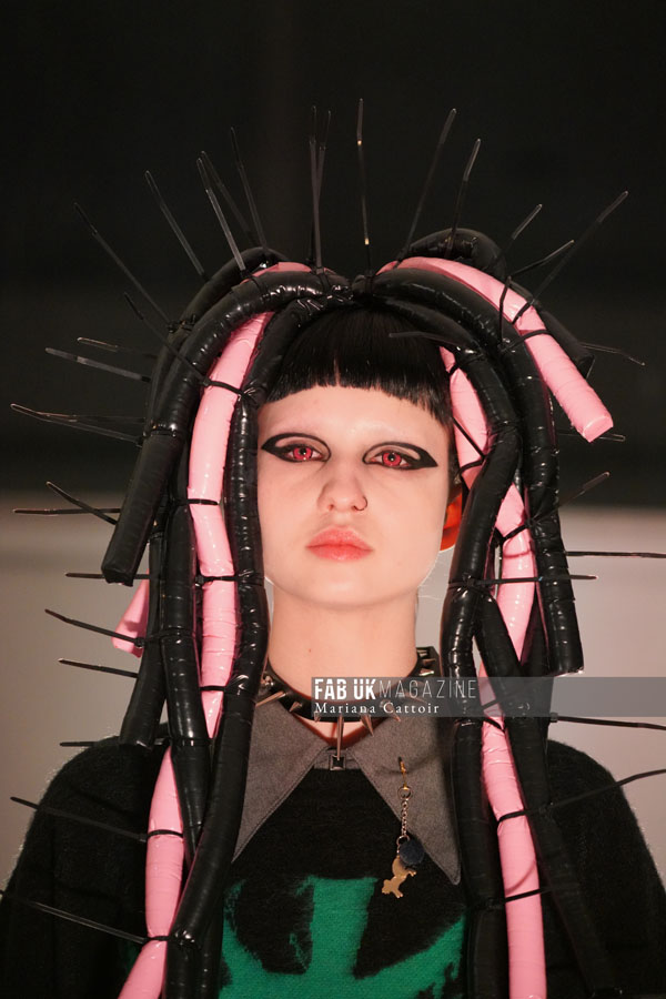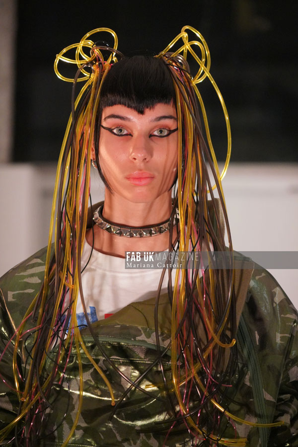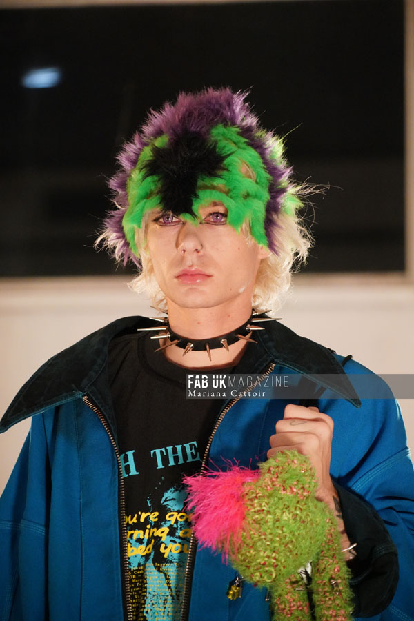Photographed by the talented Mariana Cattoir, the runway was a visual feast of dynamic silhouettes, striking contrasts, and daring textures. Models donned pieces that juxtaposed sharp tailoring with punk-inspired elements, including distressed fabrics, bold graphics, and intricate layering.