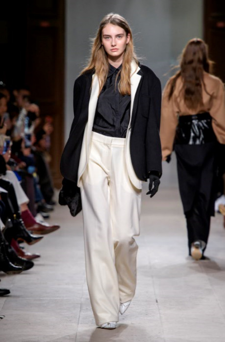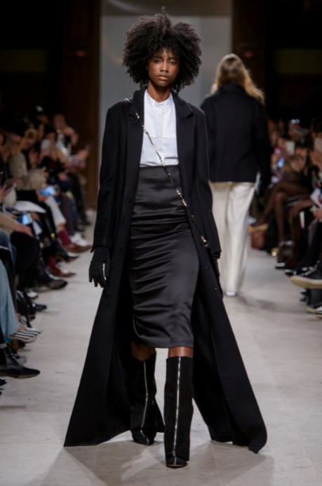 A collection with a touch of Montana, with its oversize shoulders, its precise silhouettes that mark and draw the waist, in a spirit of deconstruction, soft tailoring and natural elegance. Geoffrey Beene’s graphics line blends into the fluid movement of the silk fringes of the 1970s. A resolutely elegant wardrobe, easy to wear, but also and above all timeless, punctuated with coated shearling and silk mousseline fil coupe, for a cocooning effect.