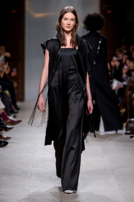 We also can feel this signature, on the glossy gabardines for an ultra-soft touch, in the ebony black metallic jersey, the matt papery leather and the fluid silk fringes.