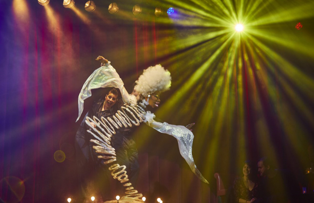 Beginning with a life-size black female puppet ‘singing’ to the tune of the disco classic ‘if you could read my mind’ – it’s a great way to start the show. Then we are treated to new acts to make this show that a blend of cabaret, comedy, circus and burlesque. The Chilly Brothers, both muscular, handsome and young, will wow you with their skills of tossing each other to and fro, enough so to take yur breathe away. Directly from India and their first time in London, the superb Mallakhamb India featuring Rajesh Amrale with Rajesh Rao will mesmerize you their acrobatic pole skills, all the while happily smiling! The beautiful and dazzling Lea Hinz is on the arial hoop, literally twirling over the head of the audiences! LJ Marles spins and twirls while his feet are tied around a strap – it’s mind blowing and breathe taking! The genetically gifted Klodi Dabkiewicz and Leon Fagbemi perform an intimate dance routine that will leave you panting. But it’s Fancy Chance, who, at the the end of the show, will literally leave you breathless as she dangles over the stage which just her hair attached to a crd – how she does I’ve got no idea – but she’s fabulous!