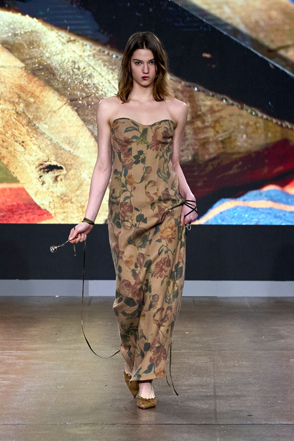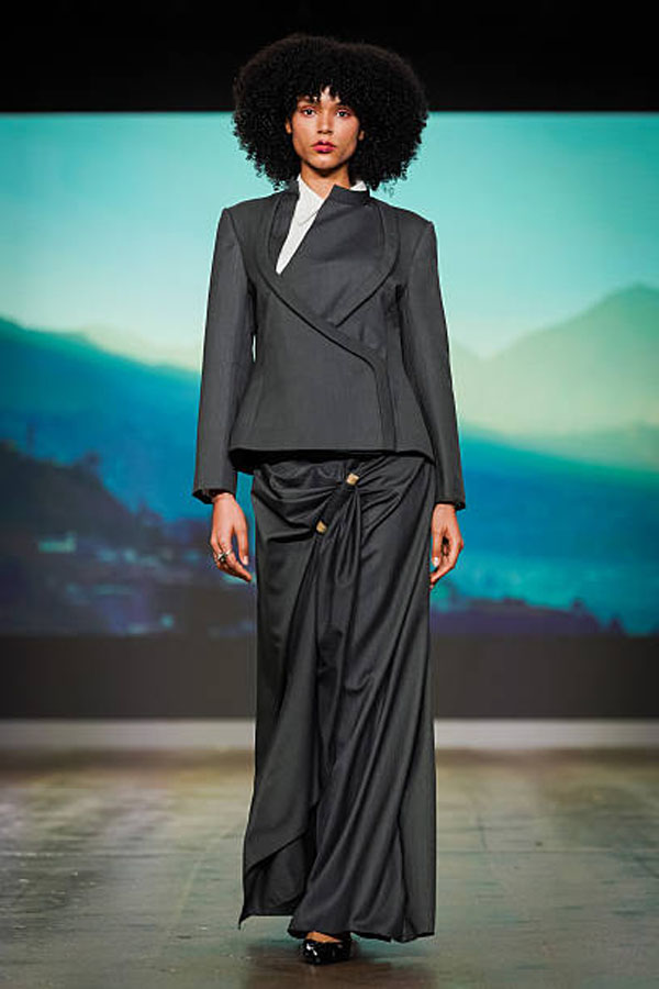 LONDON, ENGLAND – FEBRUARY 21: A model walks the runway during the Fashion Scout’s Ones To Watch show during London Fashion Week February 2026 at Protein Studios on February 21, 2026 in London, England. (Photo by Alberto Pezzali/Getty Images)