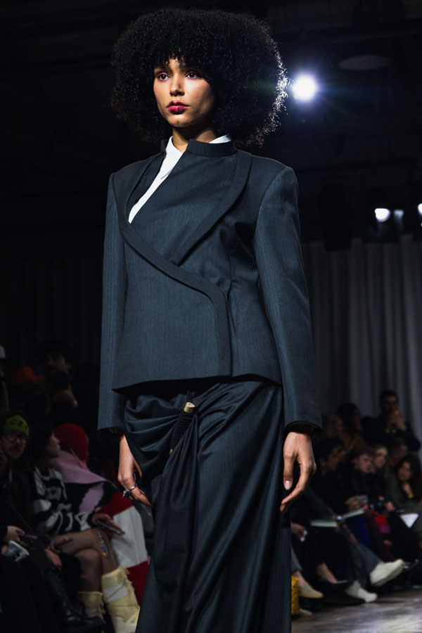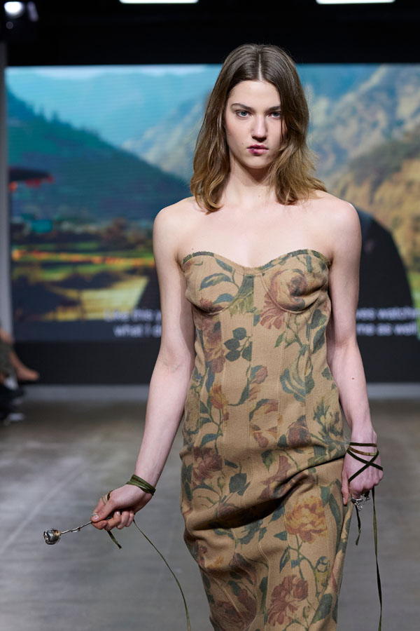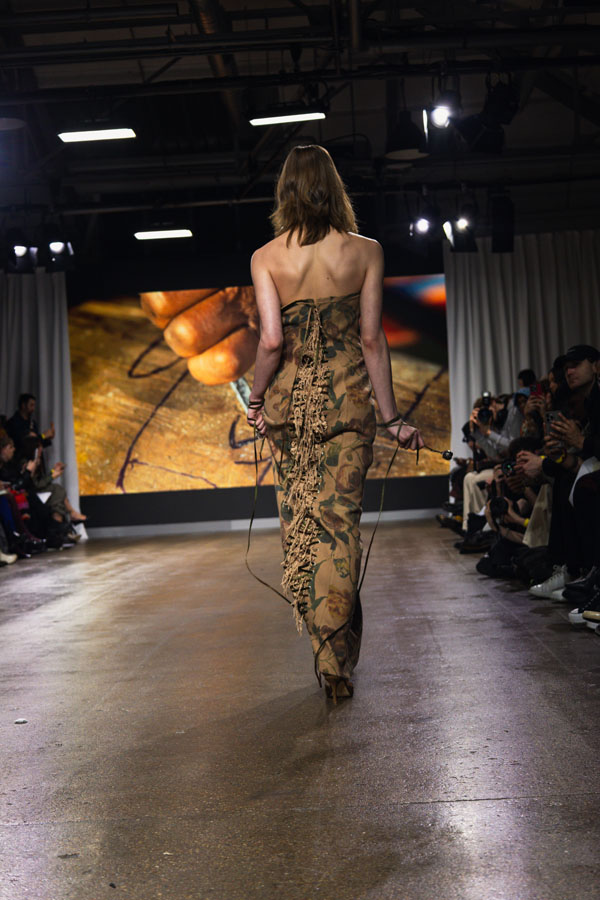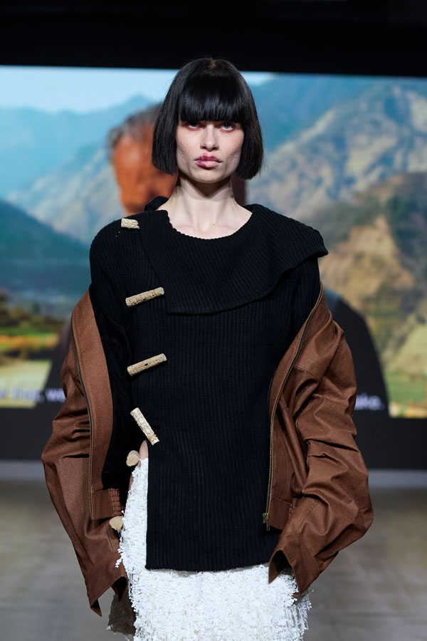 Material innovation plays a central role. Working with the crust and dust of banana leather allows the material itself to record time. With each wear, the surface gathers traces of contact, gradually forming a quiet archive of presence garments that remember – that Linger.