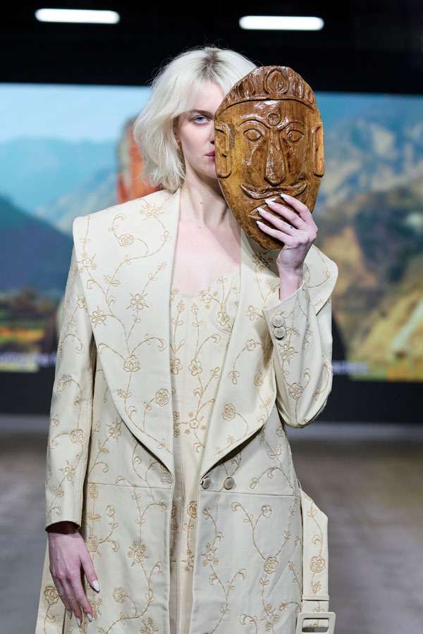 At the heart of the collection is traditional woodcarving, developed in close collaboration with Indian artisans. Functional trims are transformed into sculptural elements, each carved detail honouring the hand of the maker. These components elevate the garments beyond clothing into objects of care, intention, and enduring craftsmanship.
