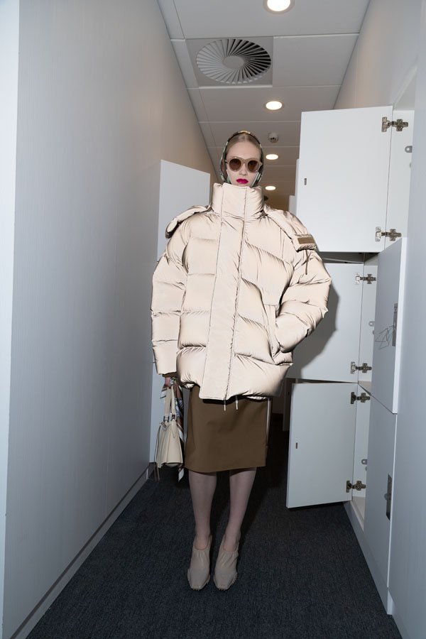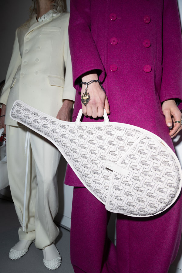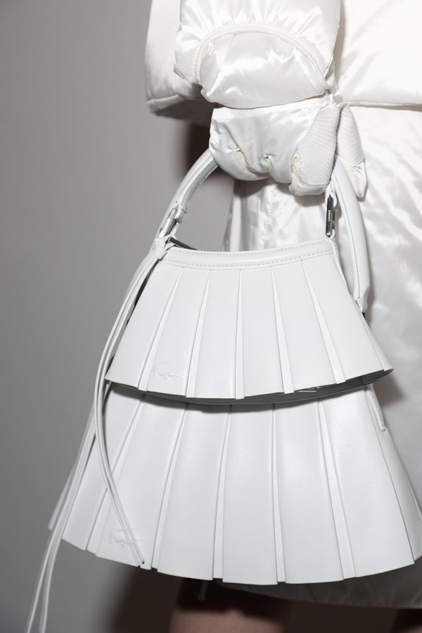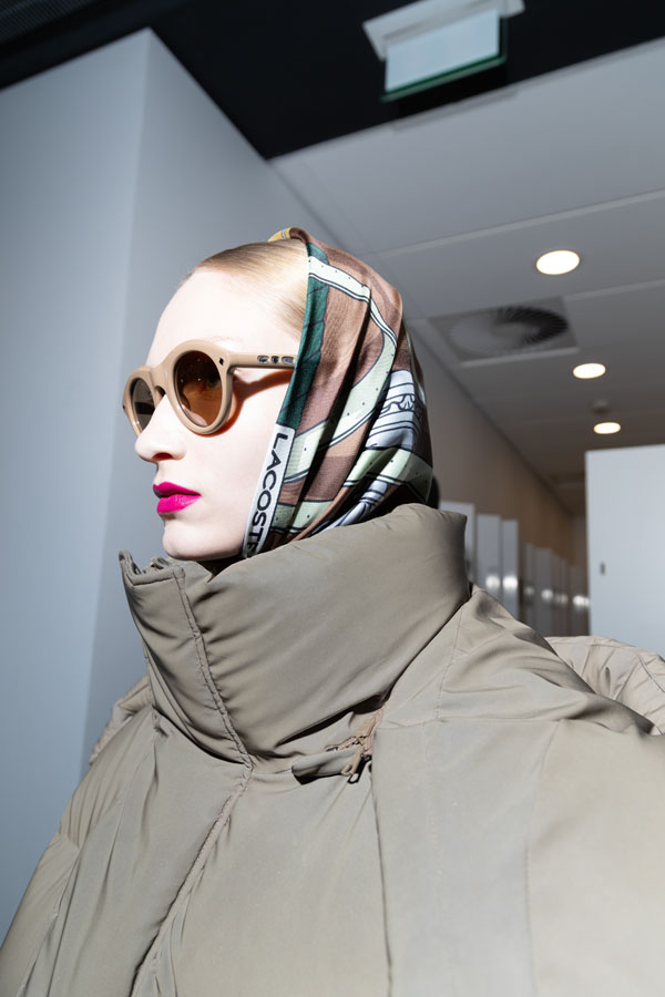 Lacoste’s Fall-Winter 2025 silhouette embraces confident sensuality and daring proportions, inspired by a contemporary reinterpretation of 1990s aesthetics. Bias-cut tops pair with pleated skirts, while double-breasted felt blazers in a striking pink-blend fabric assert a resolutely modern look. Scarf dresses are seamlessly combined with wide- leg technical trousers and oversized quilted jackets, creating a wardrobe that is both dynamic and elegant—worthy of icons past and present.