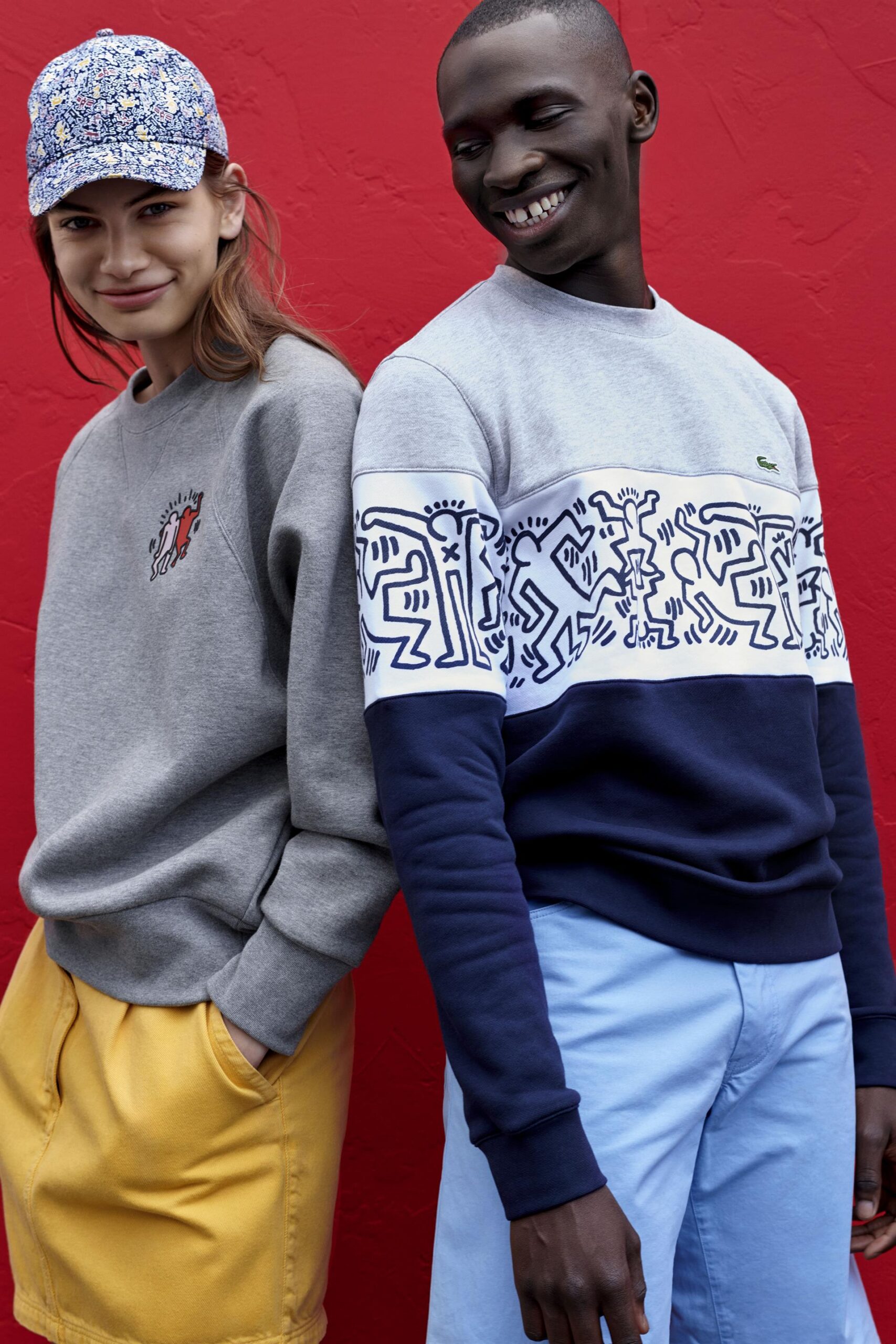 LACOSTE presents its brand new collection with the 20th century pop icon Keith Haring. A street art genius of the 1980s, Keith Haring is known for the simplicity of his line, his bright colours outlined in black and his animated figures who express his energy, zest for life and spontaneity: common values shared with the French company, which pays homage to the unique world and vision of this pioneer who had already understood the importance of combining art and fashion.