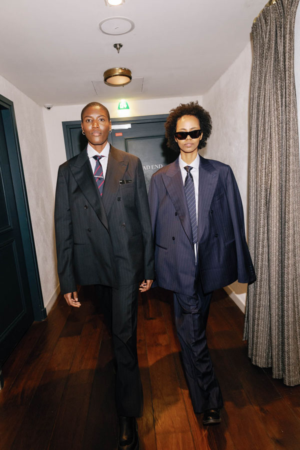Set within the hotel’s intimate spaces, the presentation built on the momentum established last September, when the brand hosted a private dinner and after-party that quietly positioned LAD/ as one to watch. This season’s offering felt assured and expansive: soft-shouldered tailoring, relaxed precision, and fabrics that spoke to Italian craft infused with Congolese rhythm and elegance.