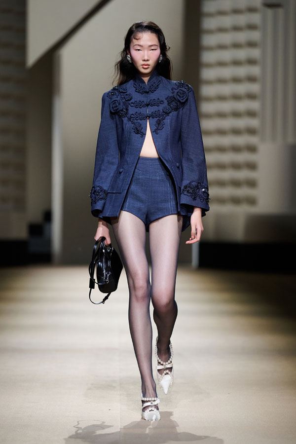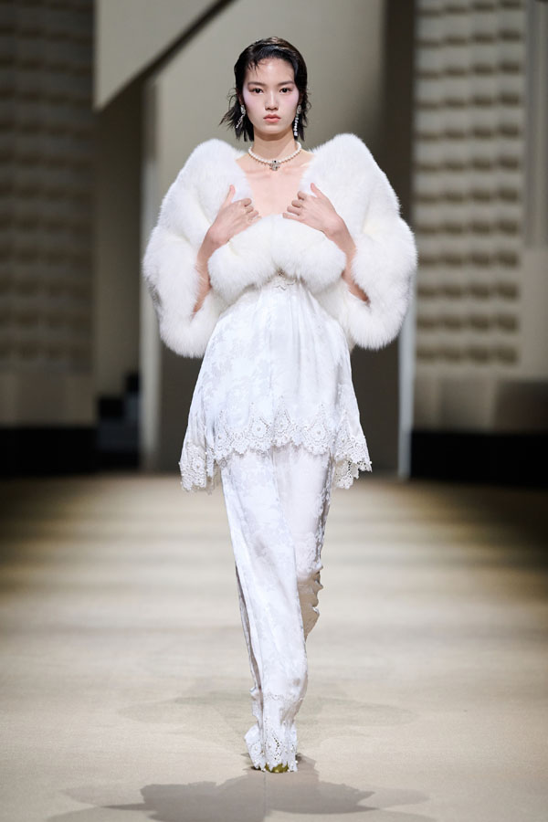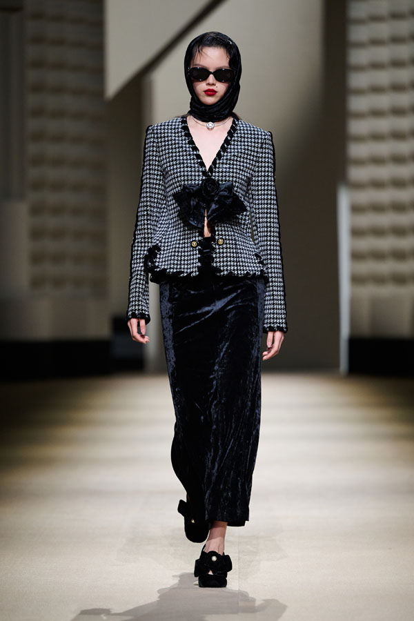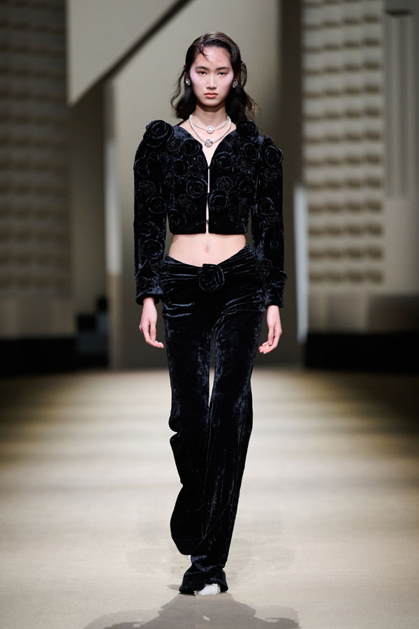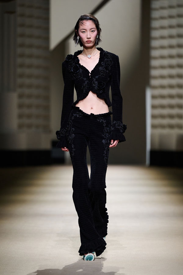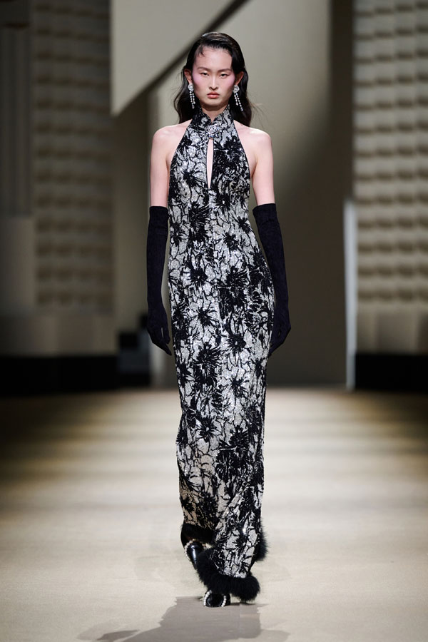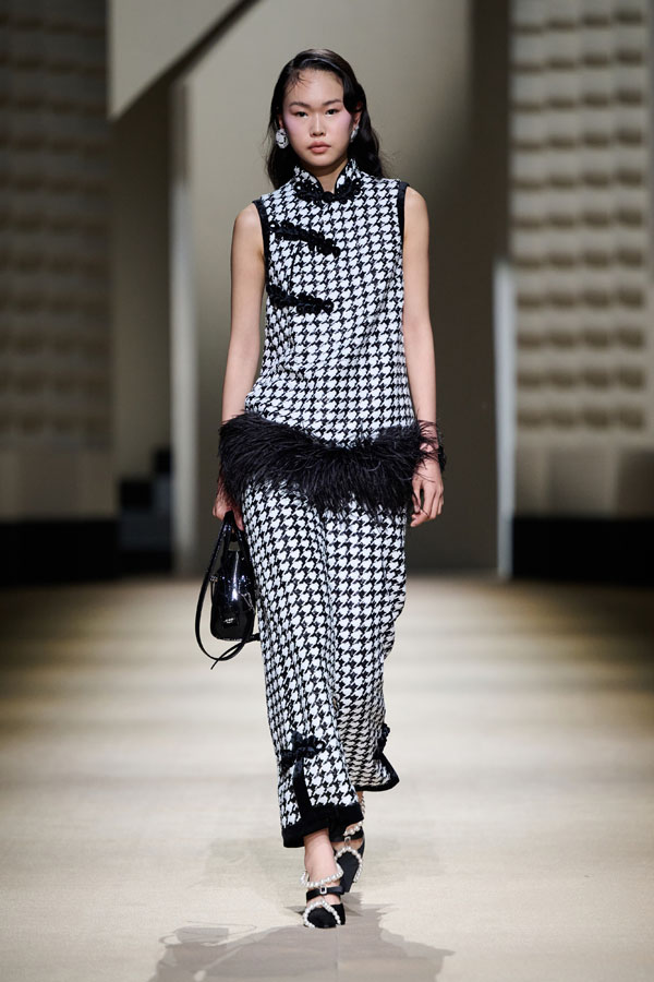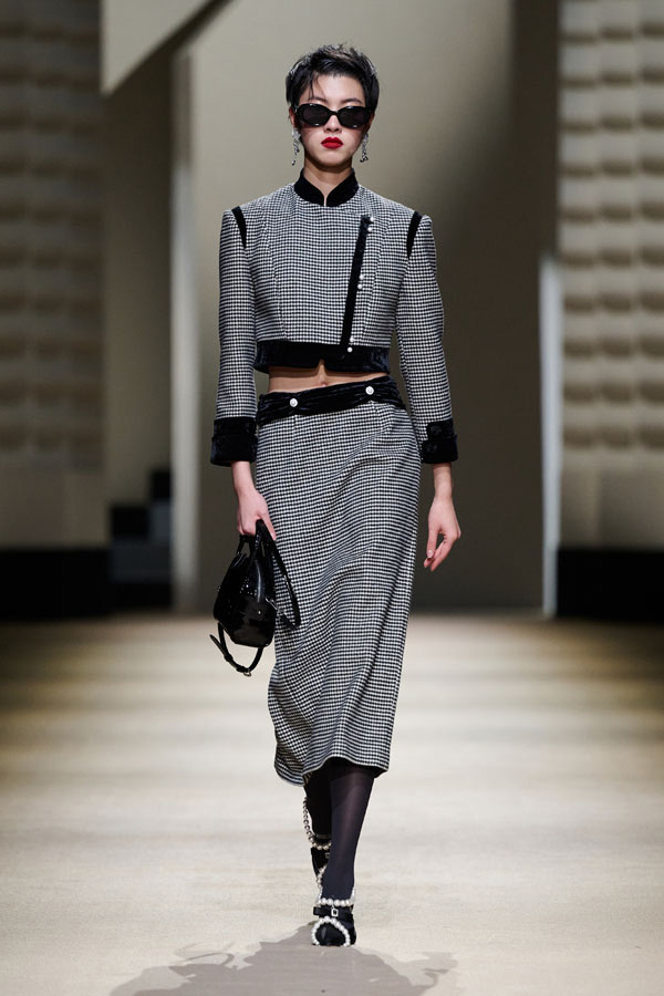 During the vibrant 1920s, modern women showcased their intelligence and emotion, pursued their dreams, and observed the blossoming of life amidst the era’s tumultuous waves. This season, Le Fame enhances the Shanghai women’s clothing style, imbued with history, complexity, and myth, reviving the oriental age and exhibiting the exceptional charm of contemporary Shanghai style. The brand honors the monochromatic runway shows of the 1990s, merging them with the dual-frame curtains typical of Art Deco architecture. Models appeared sequentially, displaying fashion in individual frames. This approach deconstructs new Chinese aesthetics through a multifaceted design that blends “style” with “art,” capturing the elegant fusion of Chinese and Western elements.