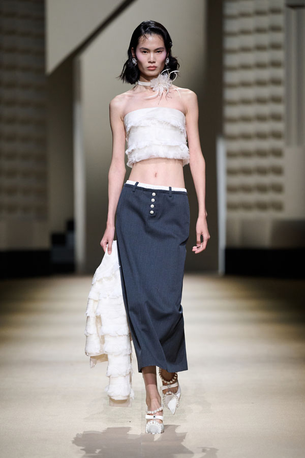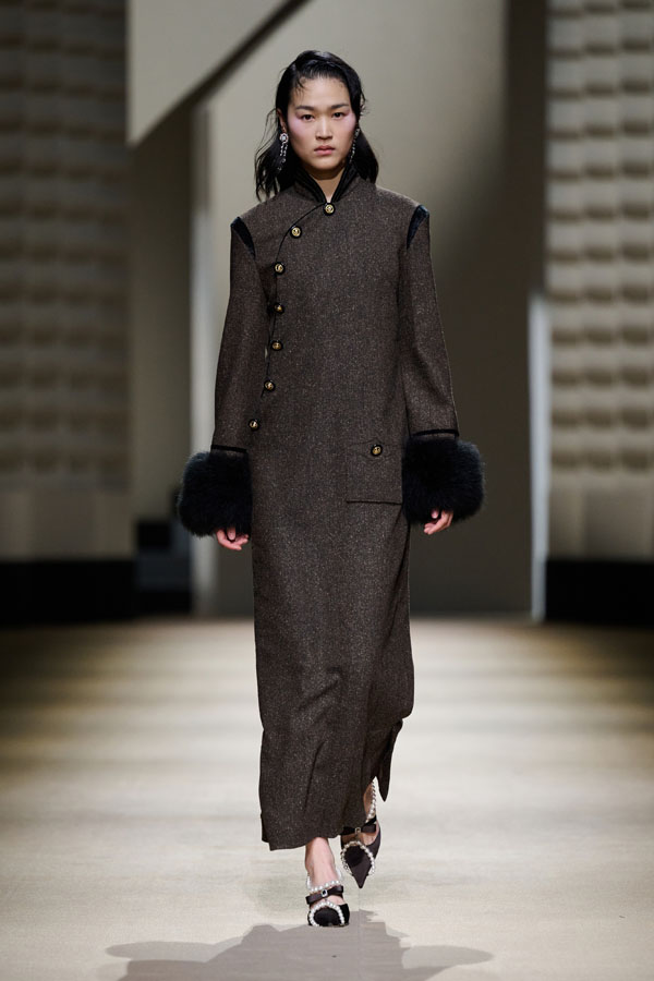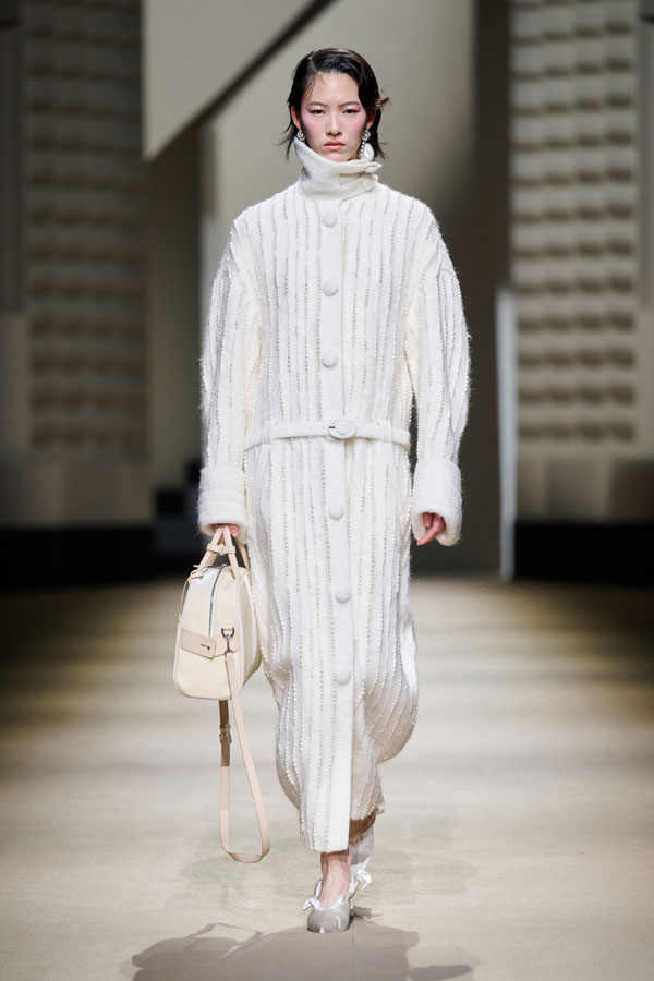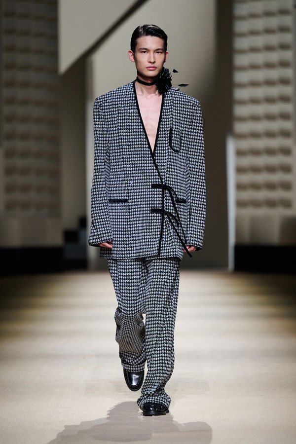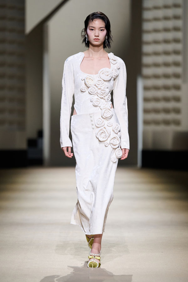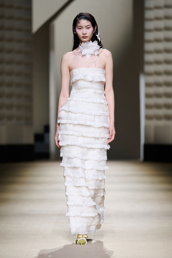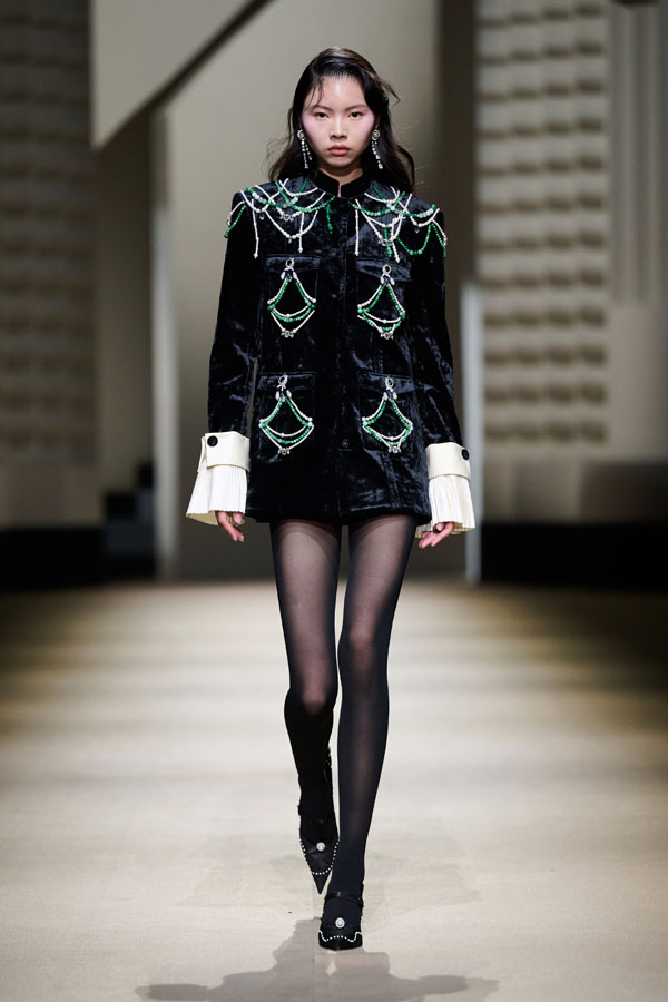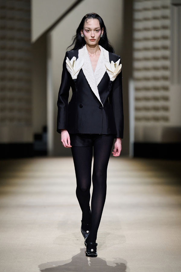 During the vibrant 1920s, modern women showcased their intelligence and emotion, pursued their dreams, and observed the blossoming of life amidst the era’s tumultuous waves. This season, Le Fame enhances the Shanghai women’s clothing style, imbued with history, complexity, and myth, reviving the oriental age and exhibiting the exceptional charm of contemporary Shanghai style. The brand honors the monochromatic runway shows of the 1990s, merging them with the dual-frame curtains typical of Art Deco architecture. Models appeared sequentially, displaying fashion in individual frames. This approach deconstructs new Chinese aesthetics through a multifaceted design that blends “style” with “art,” capturing the elegant fusion of Chinese and Western elements.