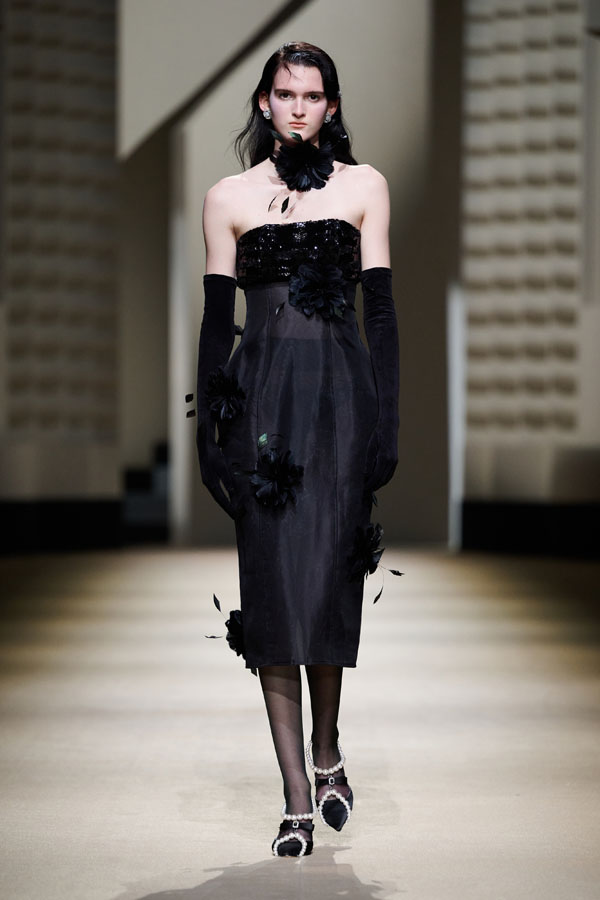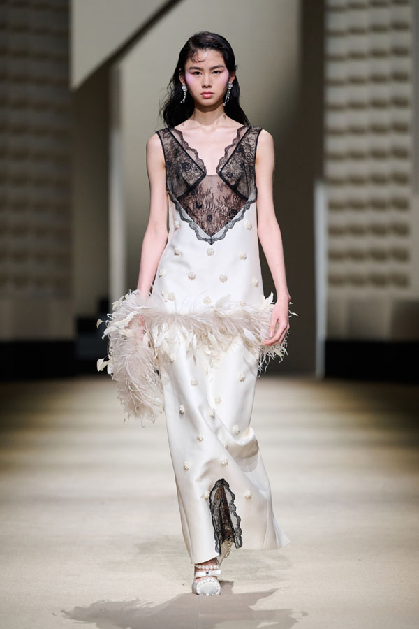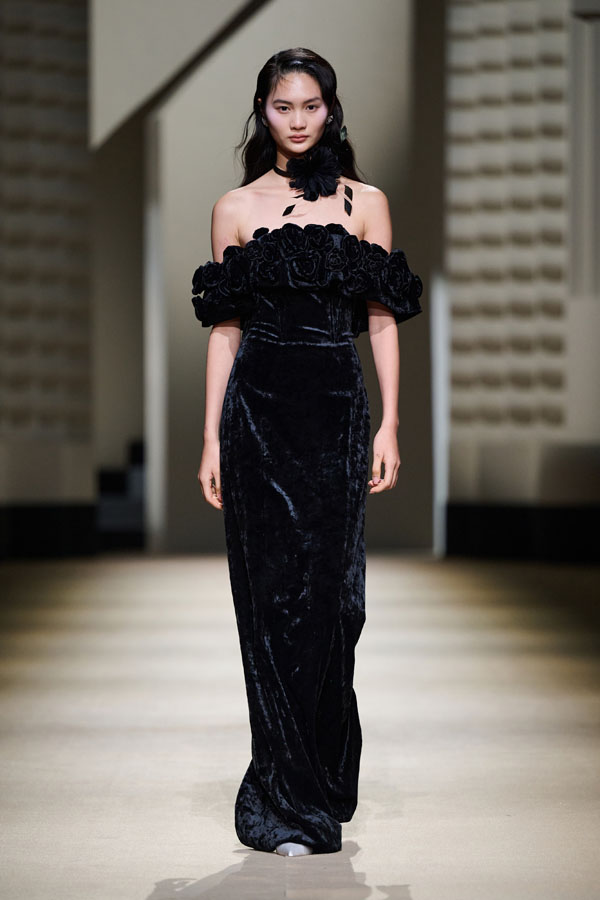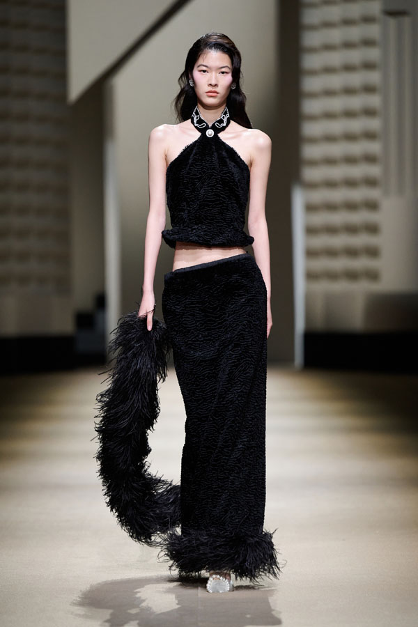 Vanity Fair emerges with black and white as its primary colors, creating a tranquil ambiance for both day and night, inside and out. Velvet and suit fabrics are luxuriously elegant without being gaudy; bows and ostrich feathers combine dynamically, adorning the garments freely and presenting the century-old, prosperous Shanghai style in an elegant and serene manner.