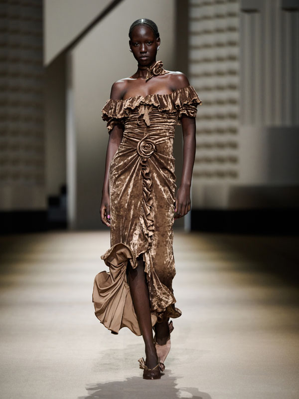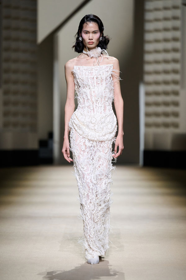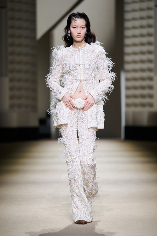 In the new era, working women radiate resilience and energy. Deconstructed suits exhibit a capable style, and herringbone fabric is intricately woven, with sequins and ostrich feathers adding creative flair. This portrays the urban woman’s charming and delicate nature in a balanced manner, crafting diverse settings for free and practical attire.