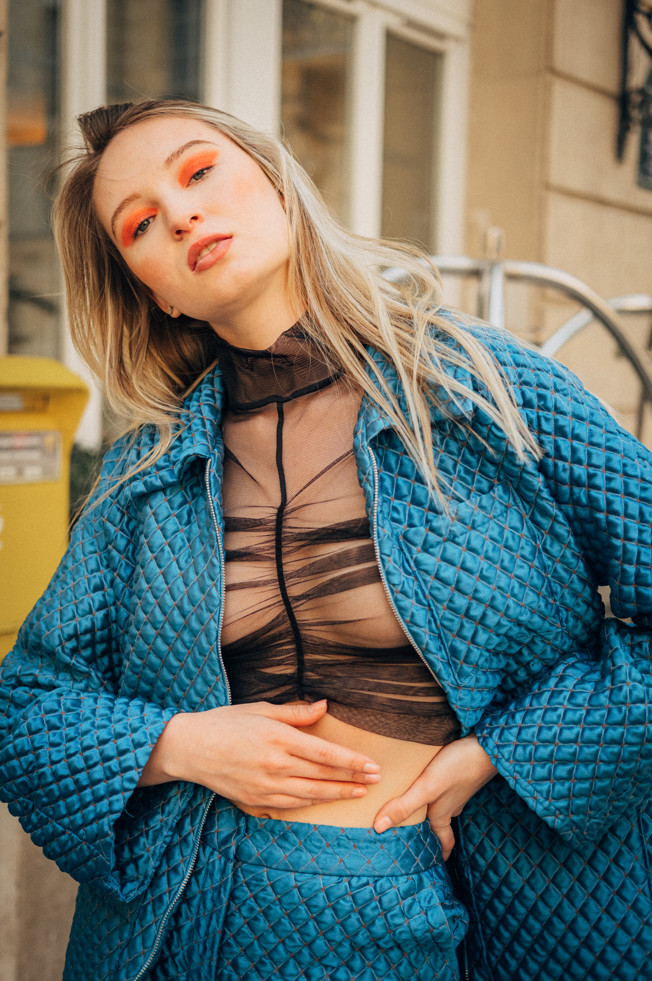 The idea of the collection revolves around an attainable cozy with an undeniable element of luxury with fabrics like velvet, silk organza, and faux fur. The versatility of the collection is obvious with the reflection of gender fluidity and androgyny throughout. Inclusivity is one of the brands main objectives. The collection includes a play on hand drawn prints and hand painted fabrics to help visualize the inspiration behind it.