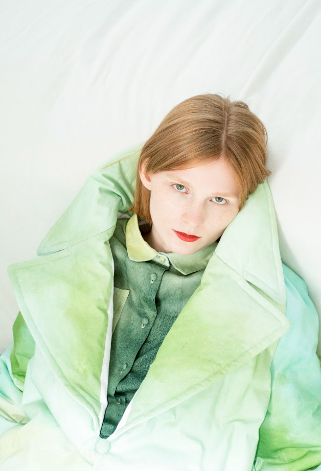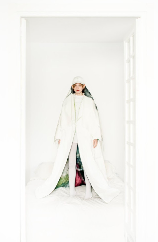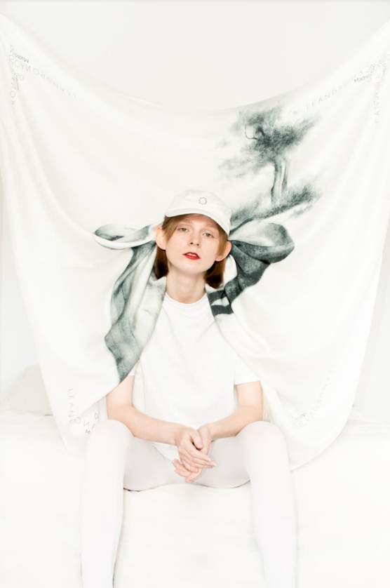 In addition to these three garments, the collection consists of two scarves, one with the colour print and another with the black and white print made by hand.
