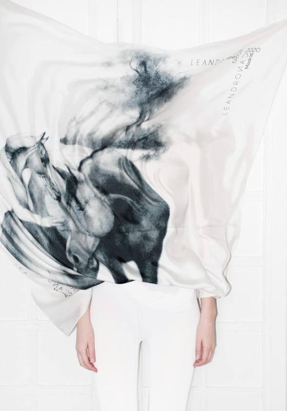 The result of the collaboration between these companies has given rise to the capsule collection called Amalgama. Inspiration takes us into a dream world where women on a horseback ride through lush forests. It is like a dream in which dreams and reality coexist. This dream has been translated into a hand-painted print by the artist María Rubio Tortosa.