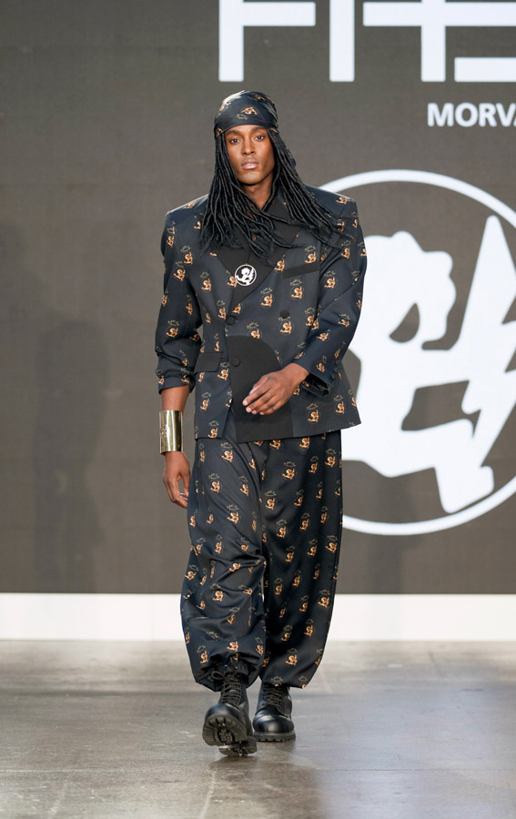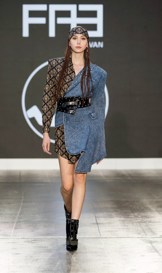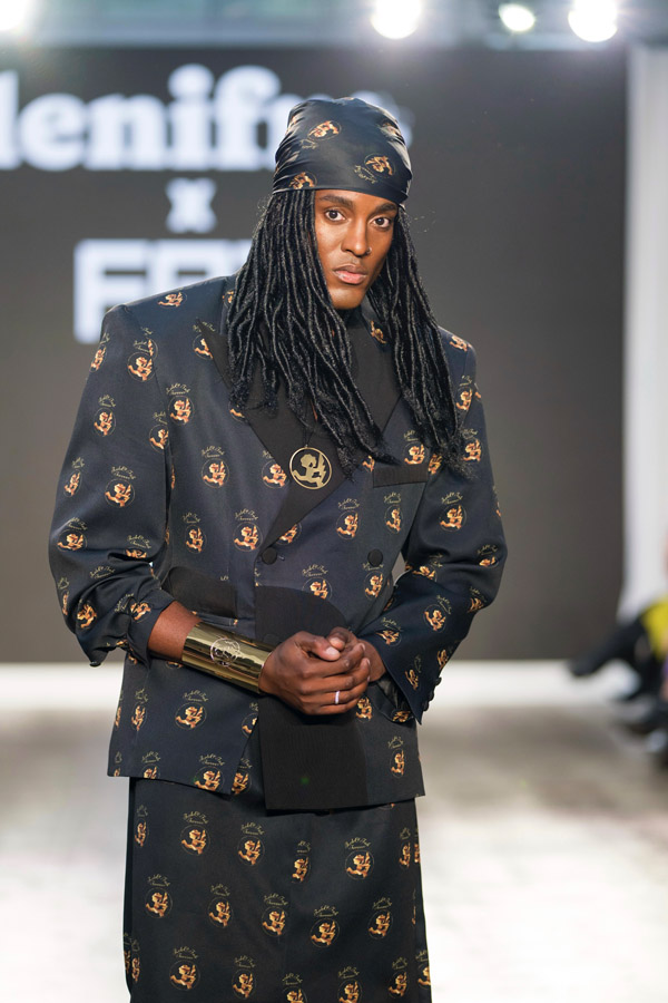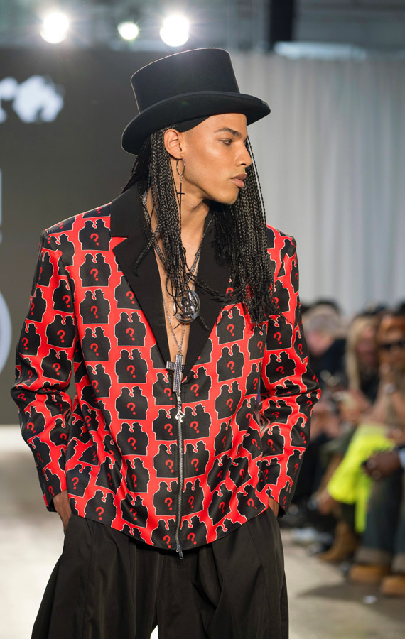 Emphasizing volume, asymmetrical garments, studs and of course those big shoulder pads, true of their unique style. The designs reinterpret the group’s iconic style through the unique lens of Lenifro’s aesthetic. This collection not only captures the spirit of the original designs but also weaves in a powerful message of resilience, making this collection both nostalgic and innovative.