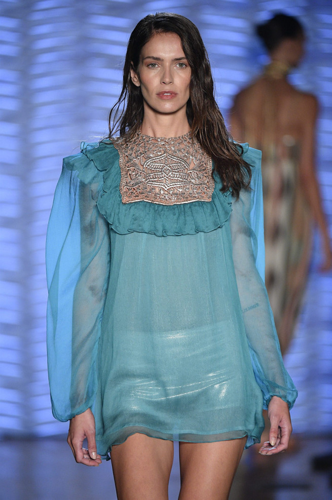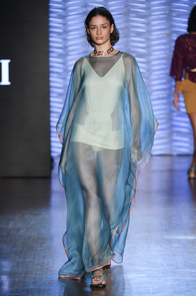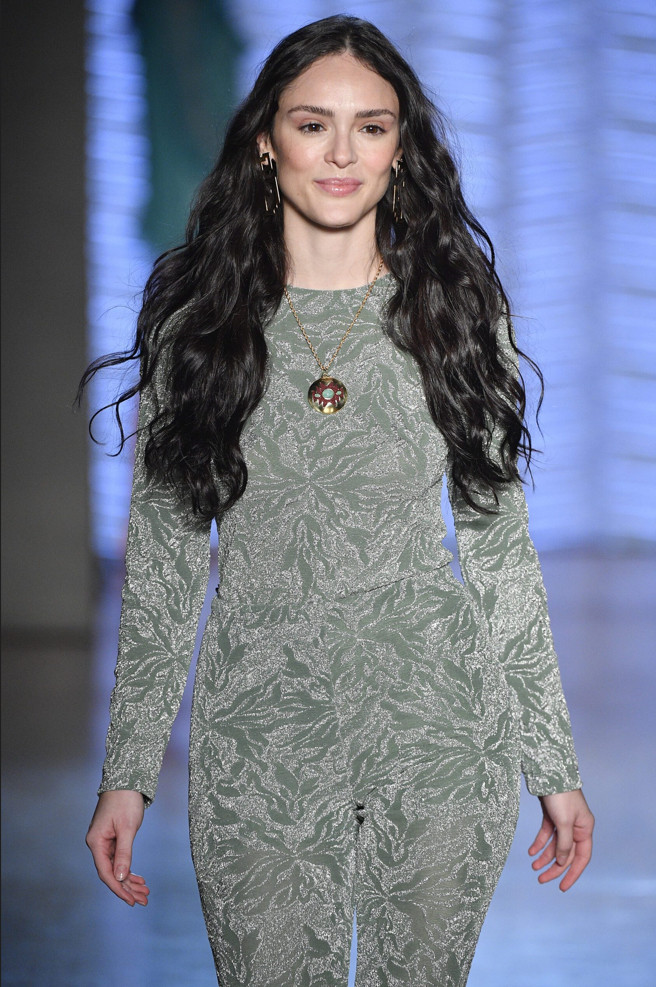 The collection combines ancestry and futurism. Inca prints and ethnic jacquards are accompanied by metallic details that refer to the futurism of the 60s. The georgette inspiration combined with the Inca design forms the noble basis of a hybrid collection.
