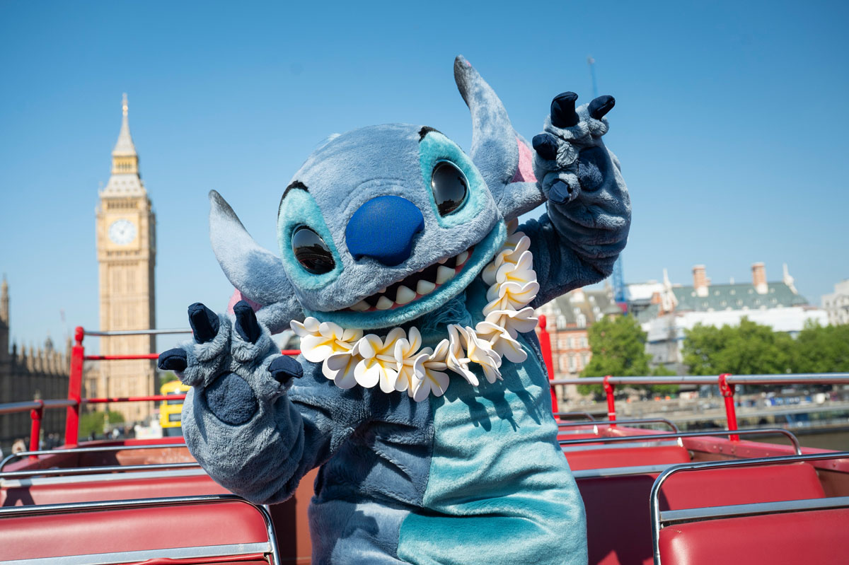 Stitch’s adventure began along the Thames, where he was spotted causing mischief at the London Eye. From there, he leapt onto a classic red double-decker bus, zipping across Westminster Bridge as Big Ben chimed in the background as Stitch’s lovable chaos met heartwarming charm.