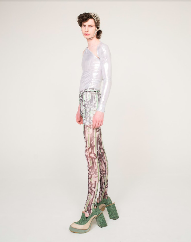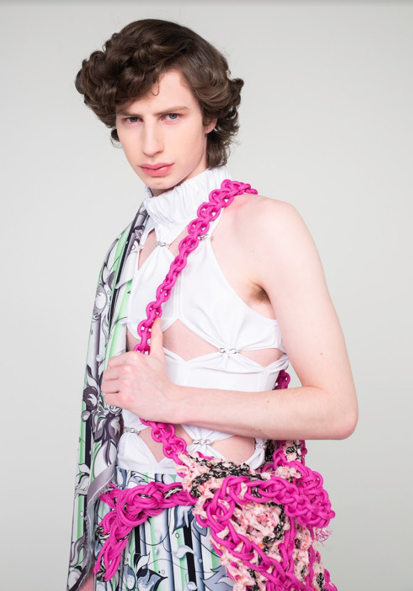 In line with the ethos of Linus Leonardsson, “Let There Be Light” presents a gender non-conforming collection where the lines of female and male wardrobes are diffused into nonexistence, all with the help of Scandinavian maximalism and hysteric glamour. Furthermore, the collection is made entirely out of recycled, dead-stock, up-cycled or low-emission fabrics and materials from European sources. After all, in order to achieve the future utopia of our dreams, we must first take care of the world of today.