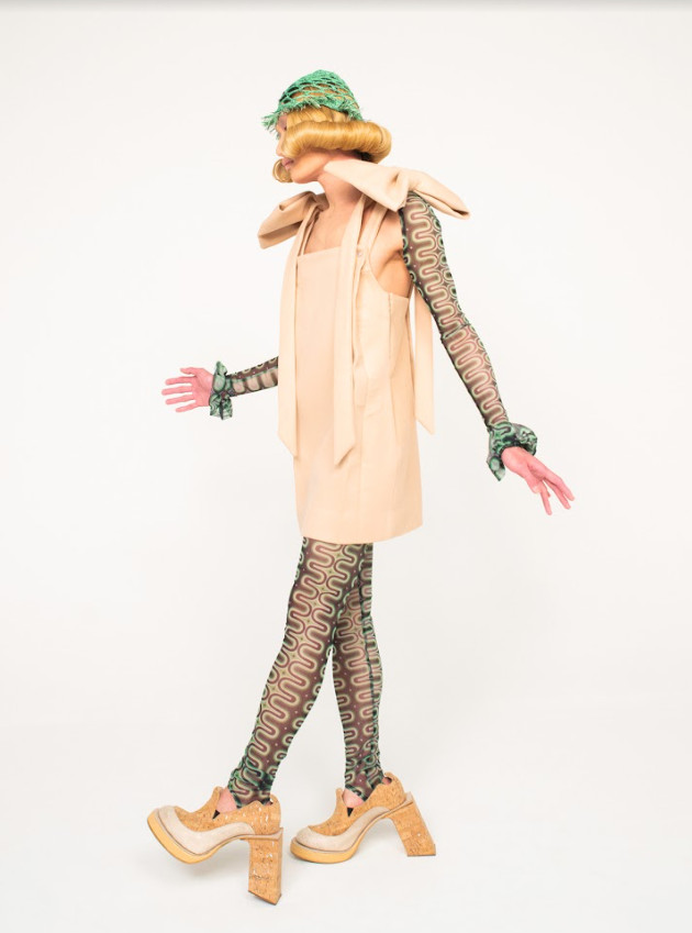 The collection also references past ideas of utopia, in specific the 60’s space age and its hopeful look on the future, including its problematic undertones. For example, the launch of blissfully ignorant mass production, the emerge of hedonistic flower power and its contrast to absurd traditional core family values promising unachievable happiness to the masses. Also the maximalist prints reference this époque, but have been achieved entirely digitally as a contemporary interpretation, while the box like pleated constructions and dripping bust seams are a nod to fashion visionaries of the time.
