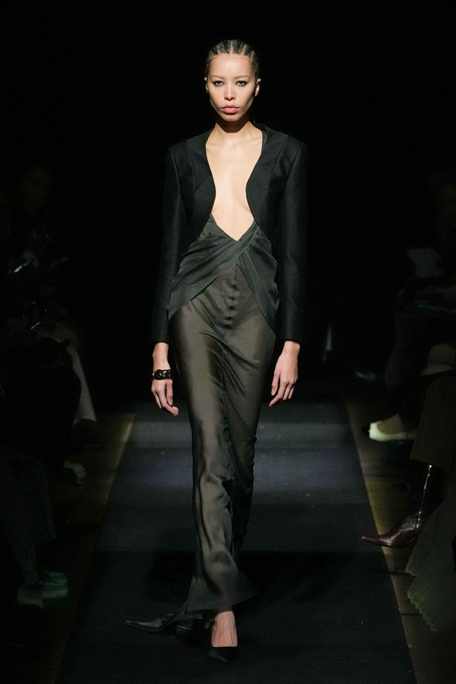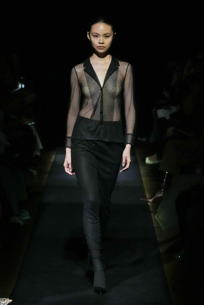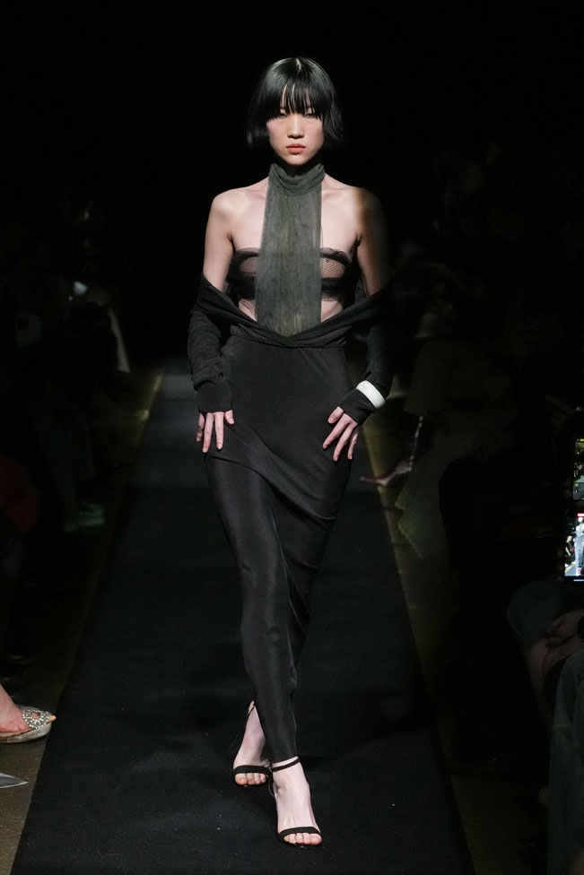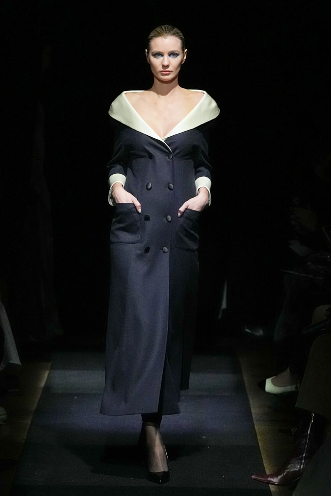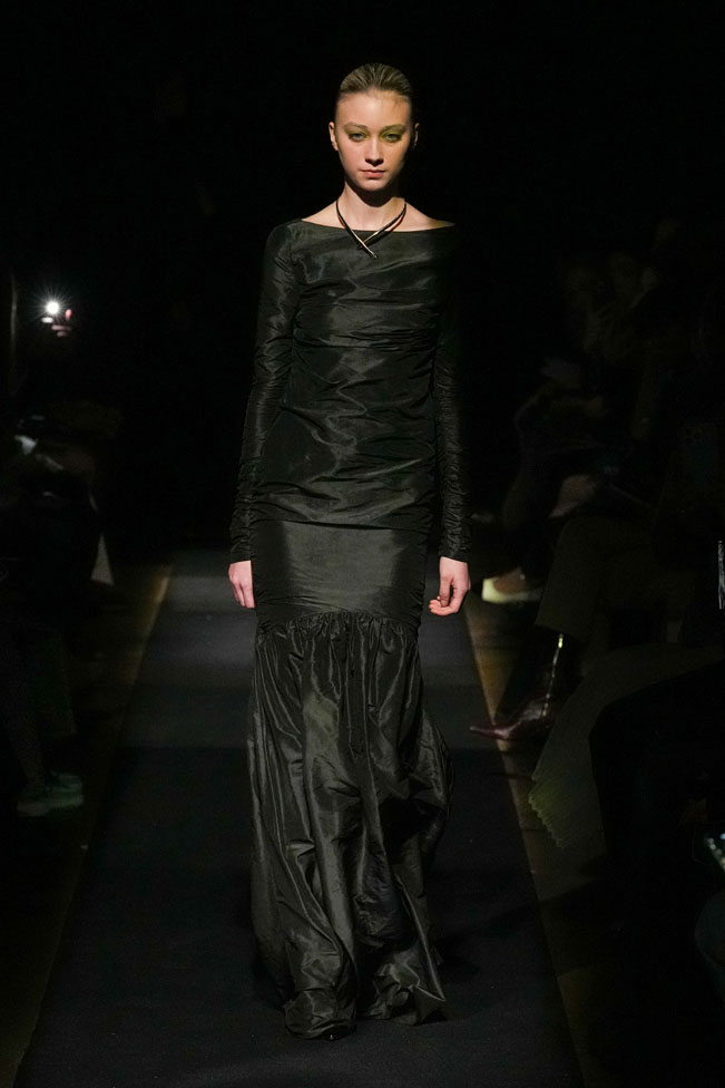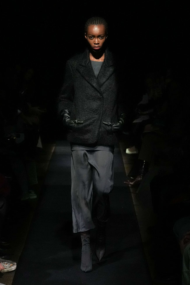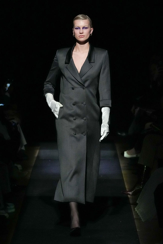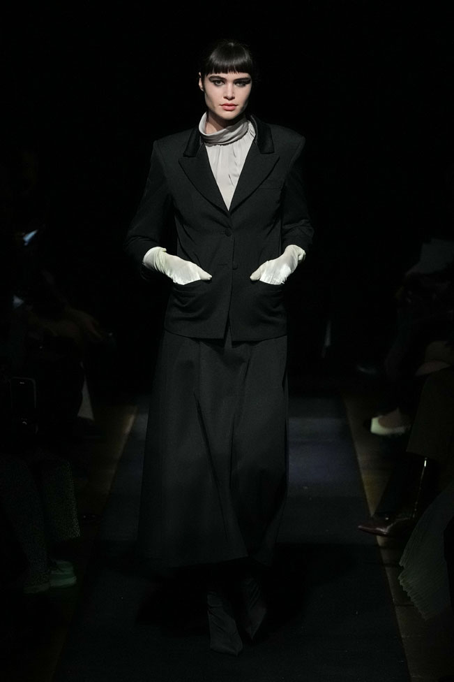 YEF STUDIO’s collection created a modern contemporary silhouette in menswear using British youth culture references from the late 70s to the late 80s through the manipulation of fabric and the control of structural details, as well as the integration of femininity.