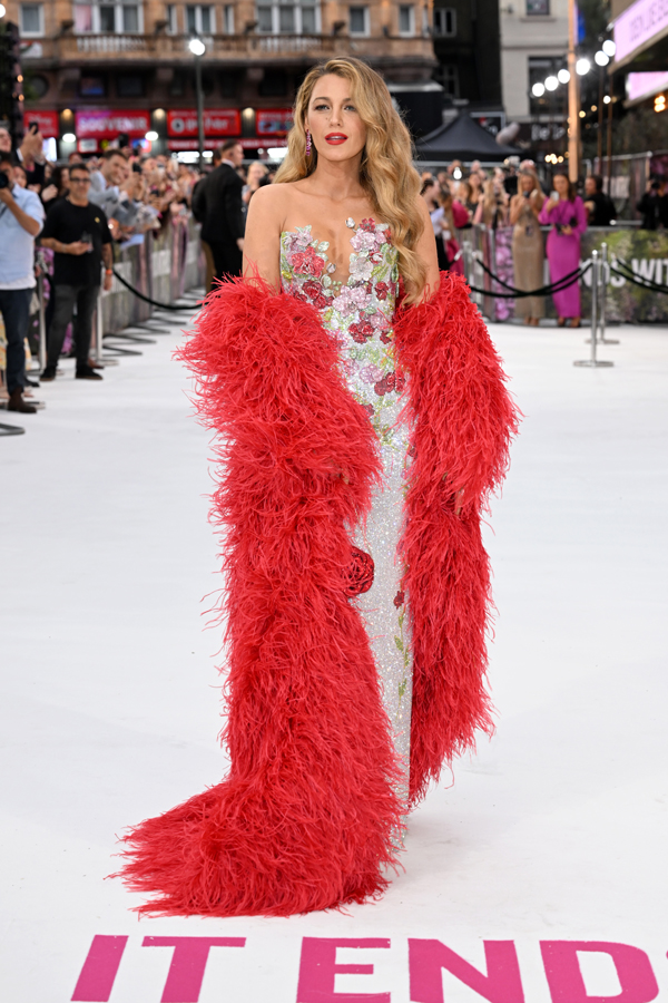 LONDON, ENGLAND – AUGUST 08: Blake Lively attends the “It Ends With Us” UK Gala Screening at Odeon Luxe Leicester Square on August 08, 2024 in London, England. (Photo by Jeff Spicer/Getty Images for Sony Pictures)