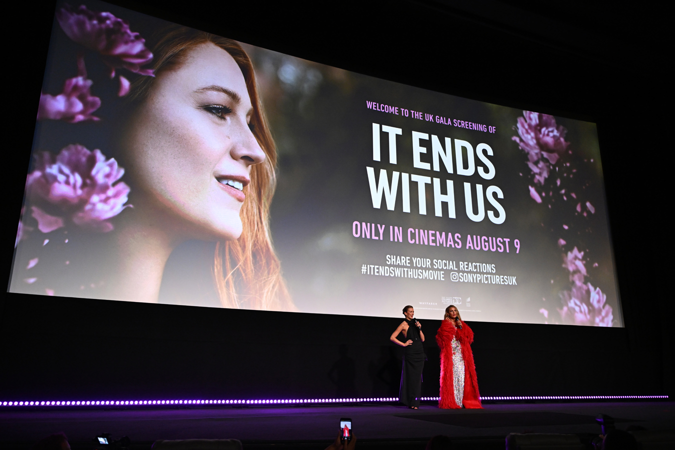 LONDON, ENGLAND – AUGUST 08: Isabela Ferrer and Blake Lively onstage during the “It Ends With Us” UK Gala Screening at Odeon Luxe Leicester Square on August 08, 2024 in London, England. (Photo by Jeff Spicer/Getty Images for Sony Pictures)