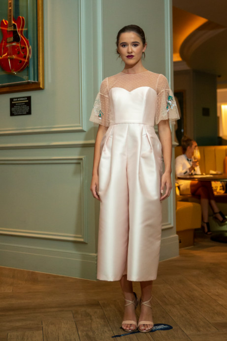 Louise’s ethereal collection of gowns and jumpsuits were inspired by the idea of creating beauty among the chaos we have all faced this year. Dreaming of brighter days, the designs are romantic, yet subtly playful and the muted pastel tones add to the dreamlike feel for the collection.