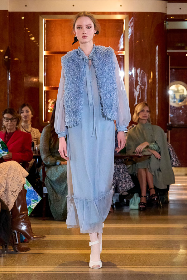Milan, February 26, 2025 – Italian fashion house Luisa Beccaria has introduced its Fall/Winter 2025-2026 collection, Into the Light, at the prestigious Casa Cipriani in Milan. Inspired by the elegance of the 1950s, the collection redefines femininity with flowing silhouettes, rich textures, and a luminous color palette.