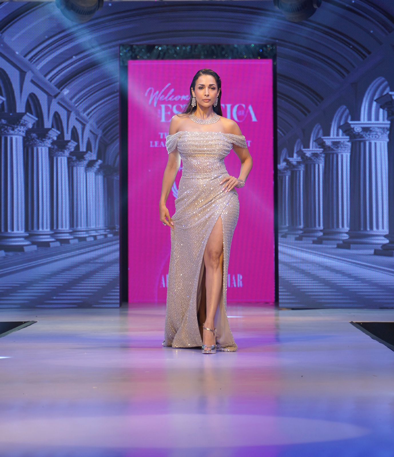Actress Malaika Arora dazzled on the runway in Delhi, illuminating designer Archana Kochhar’s showcase with her radiant presence. The event, headlined by Estetica Hair Magazine India, unveiled Kochhar’s latest collection, “Midnight Ebony.” The jewellery for the show was provided by Pyare Lal Jaggannath Saraf.