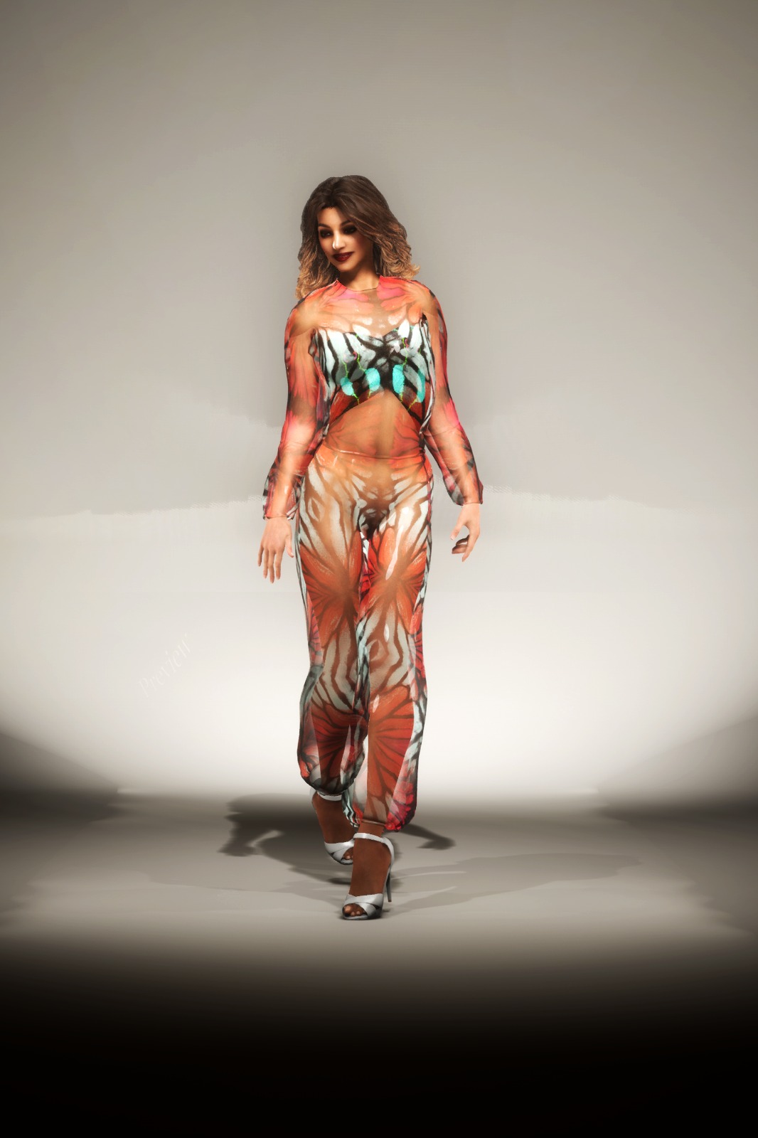 The fabrics are woven using textures of butterfly wings and flowers of the earth such as artichoke flower, plumeria, ginger. All plants and insects that are related to health, ascension and immortality. Breton incorporates his traditional chiffons, leathers, brocades, organza’s and summer weight wools. All looks virtually generated for the show will be available to purchase off the virtual runway through the on-screen boutique. Malan’s signature colour, Breton Blue features heavily throughout the Immortal collection, a colour symbolic of peace.