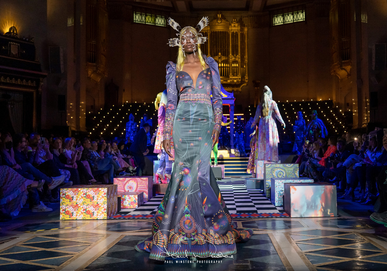 The show celebrated fashion, futurism, and human diversity at its best, with incredible performances by vocalist and composer Bishi; ‘living sculpture’ Daniel Lismore; performance artists Is She Hungry, Charity Kase, Pandemonium, Michael Moon; and recording artist Virgin X.
