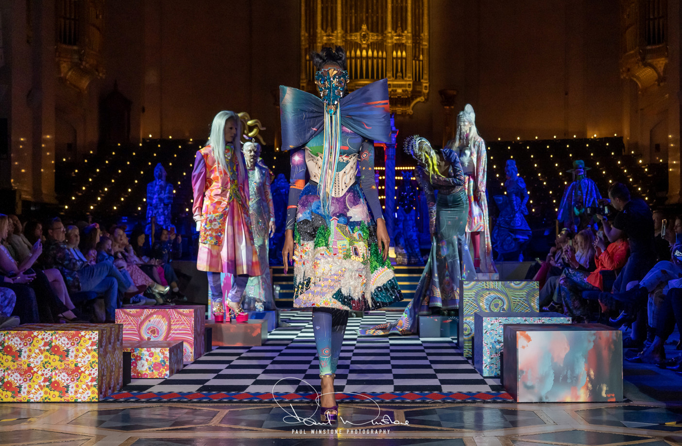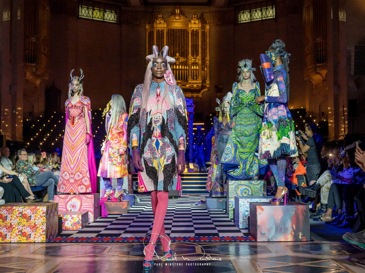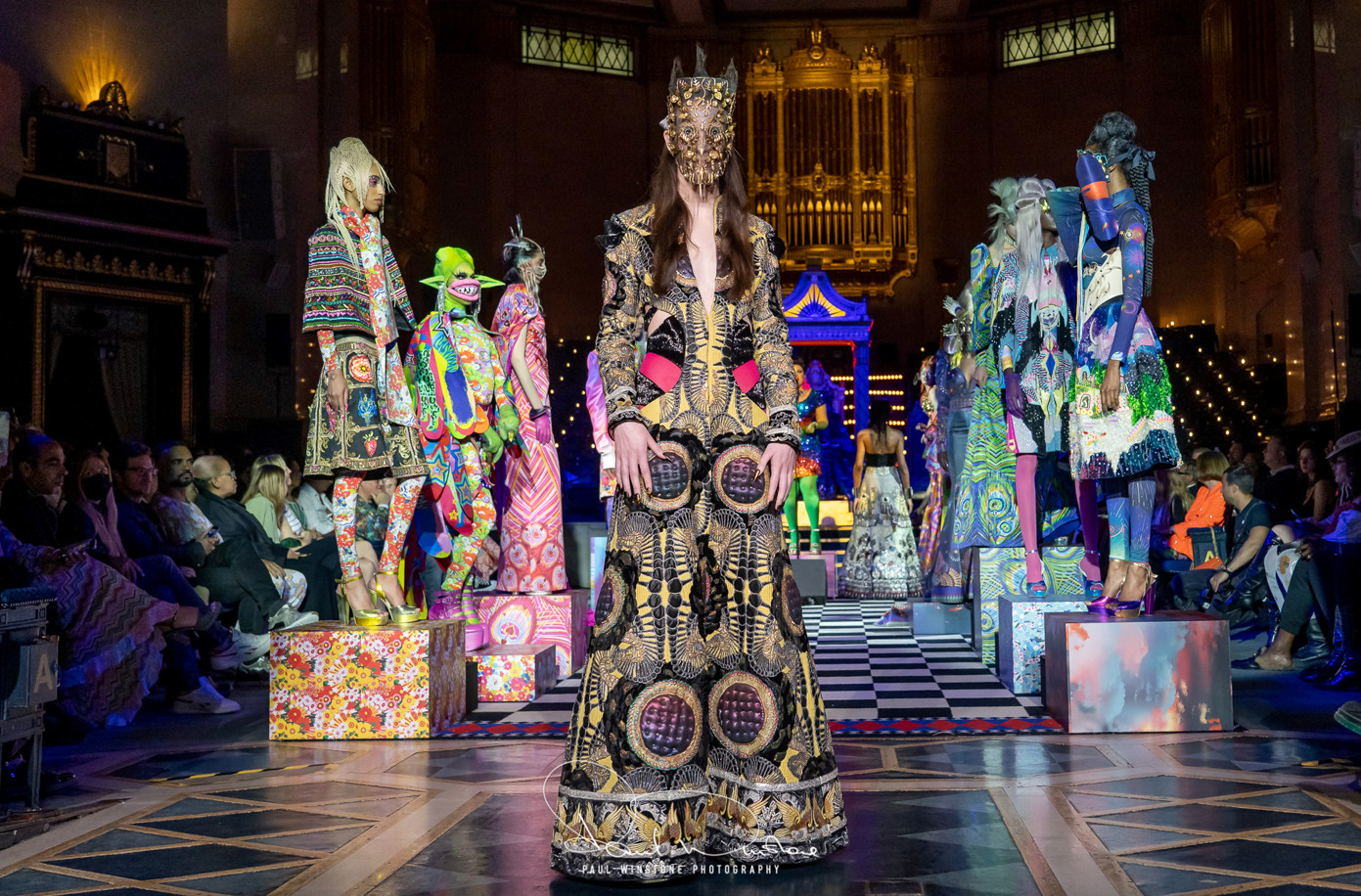 The show celebrated fashion, futurism, and human diversity at its best, with incredible performances by vocalist and composer Bishi; ‘living sculpture’ Daniel Lismore; performance artists Is She Hungry, Charity Kase, Pandemonium, Michael Moon; and recording artist Virgin X.