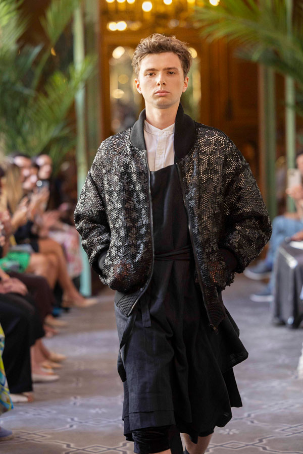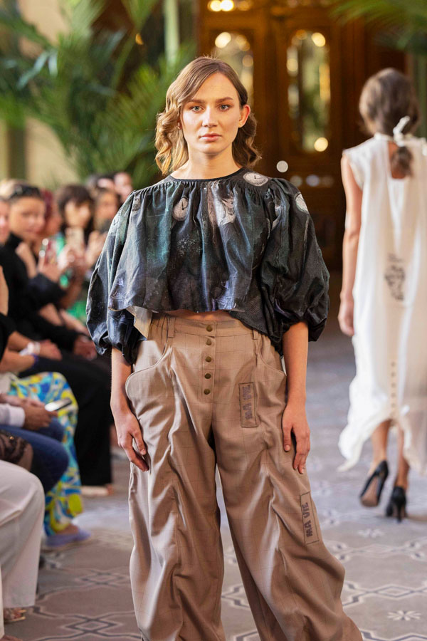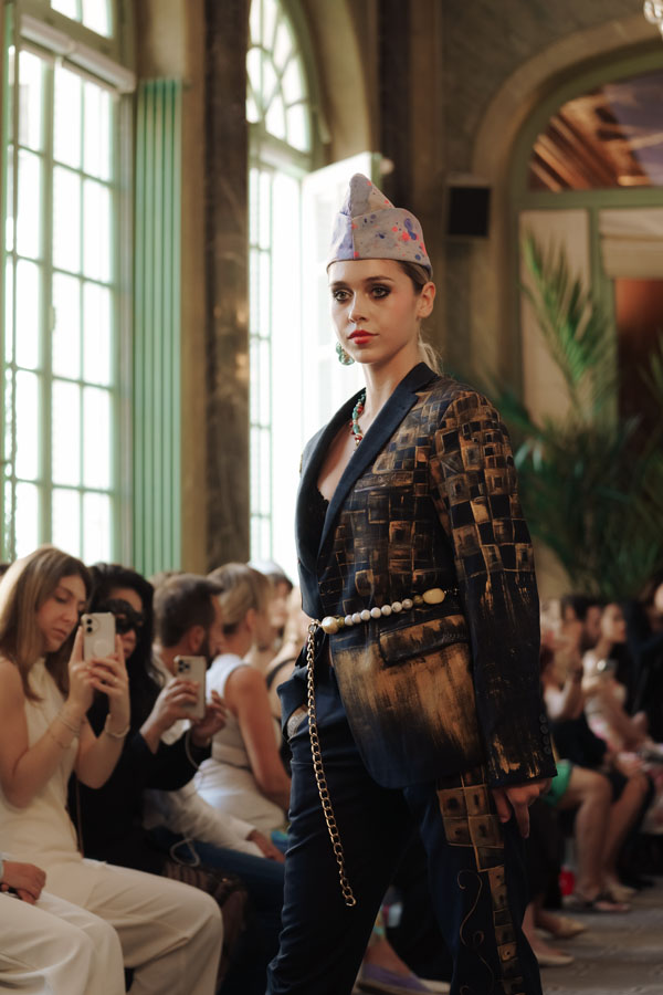 From Georgia, Sofia Kharci brought Abracadabra, a colorful, symbolic, and artisanal collection.“Paris is like a painting, a source of inspiration. You can feel creativity in the air here,” she said. Working with fabrics from Italy and Turkey, she transforms each piece by hand, painting, stitching, and personalizing it with artistic flair. My soul is Georgian, but through my creations I speak a universal language.”