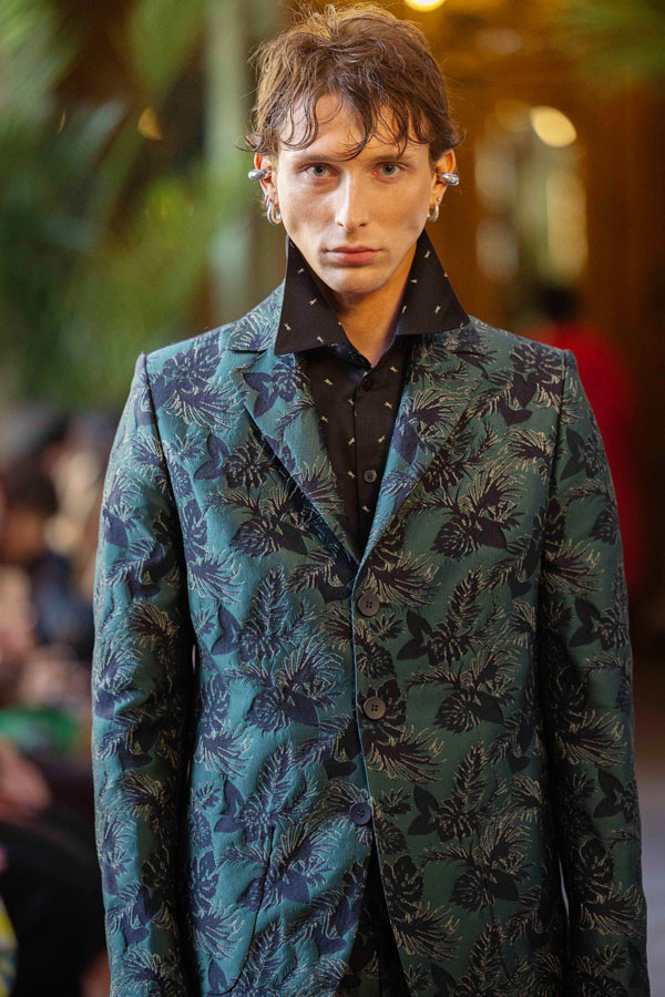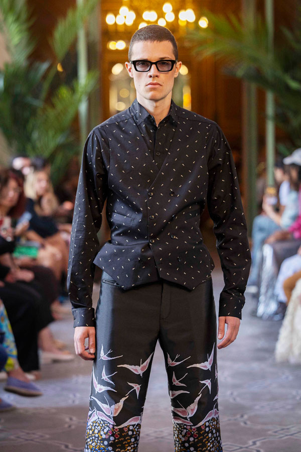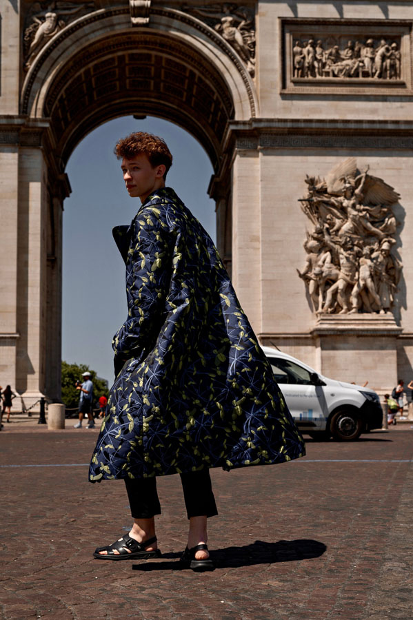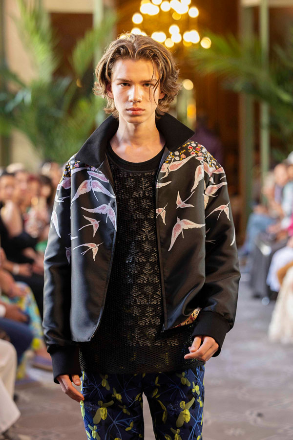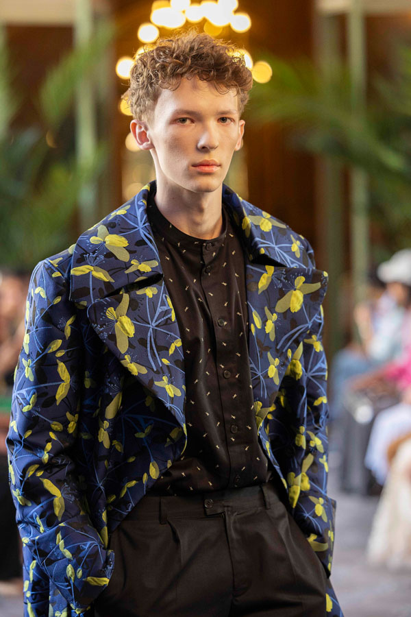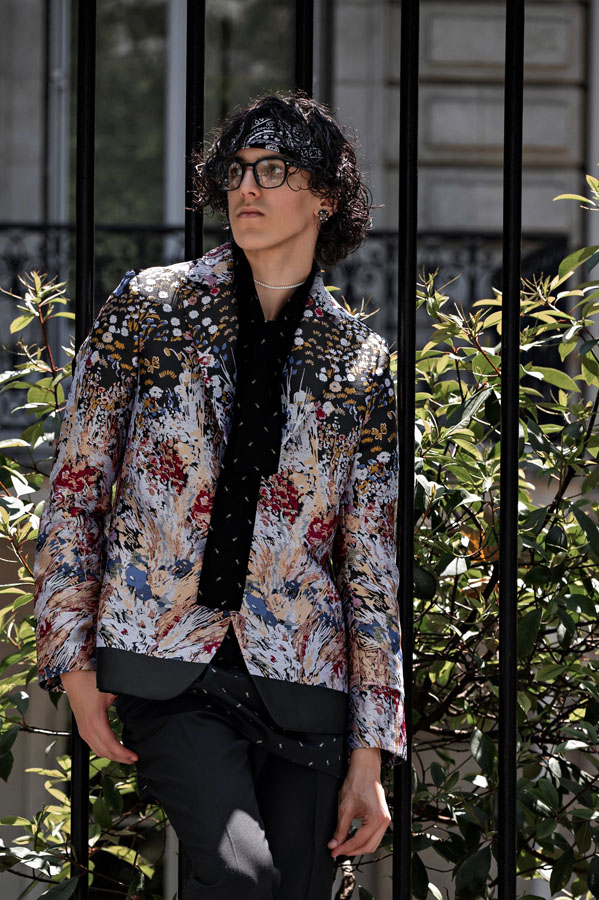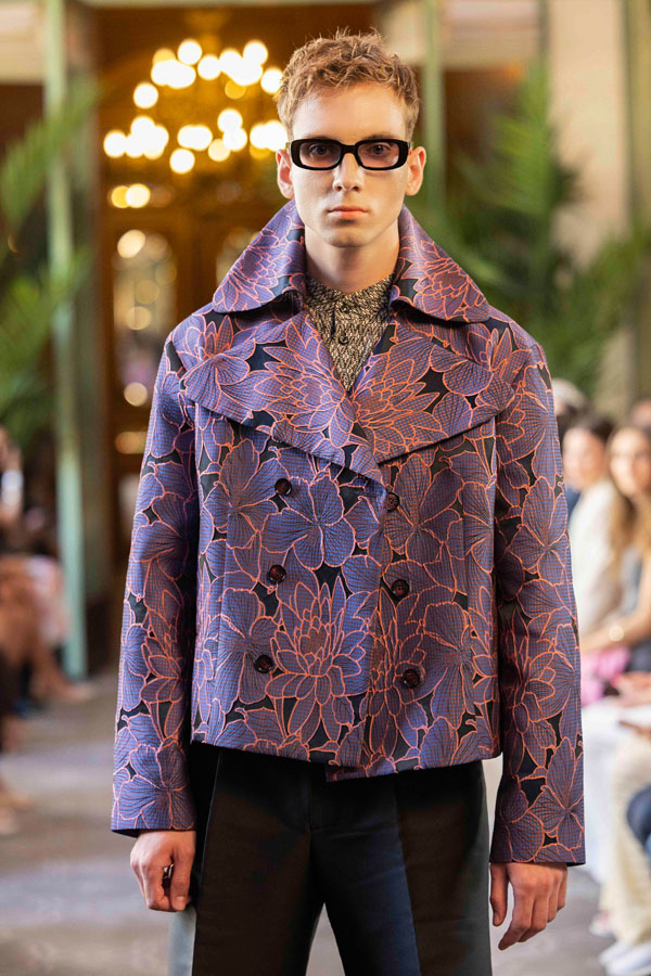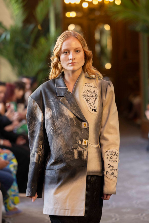 A fashion design lecturer and menswear designer, Tarakanova presented a collection inspired by Chagall’s iconic works, including Lovers, reinterpreting his signature colors like soft pinks, greens, and blues. “We showcased just days after Chagall’s birthday, in Paris, the city where he found his artistic home. It feels like a magical coincidence” she said.