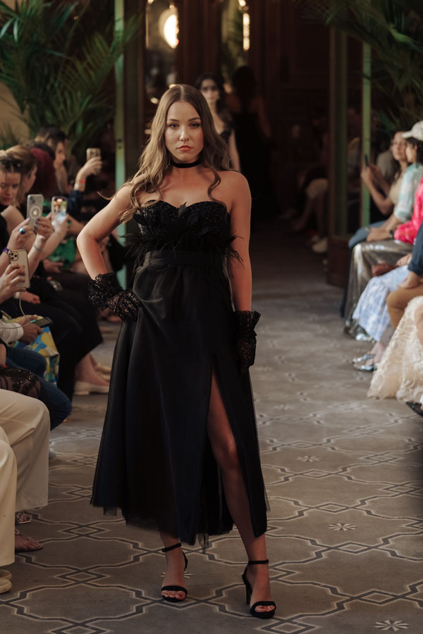 Ukrainian designer Nati Rudnitskaya, active between Valencia and Paris, presented a collection aimed at strong, self-assured women. With a growing digital presence and a background in both modeling and design, she’s one of the most promising names in Eastern European fashion. Her elegant, stylish looks are designed to empower and express modern femininity with bold glamour and confidence.