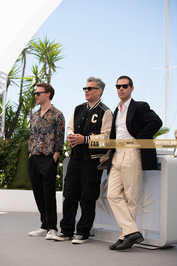 (L-R) Hugh Skinner, Benjamin Biolay and Melvil Poupaud attend the “MARCELLO MIO” Photocall at the 77th annual Cannes Film Festival at Palais des Festivals on May 22, 2024 in Cannes, France. (Photo by Victoria Mazurova/FABUK)