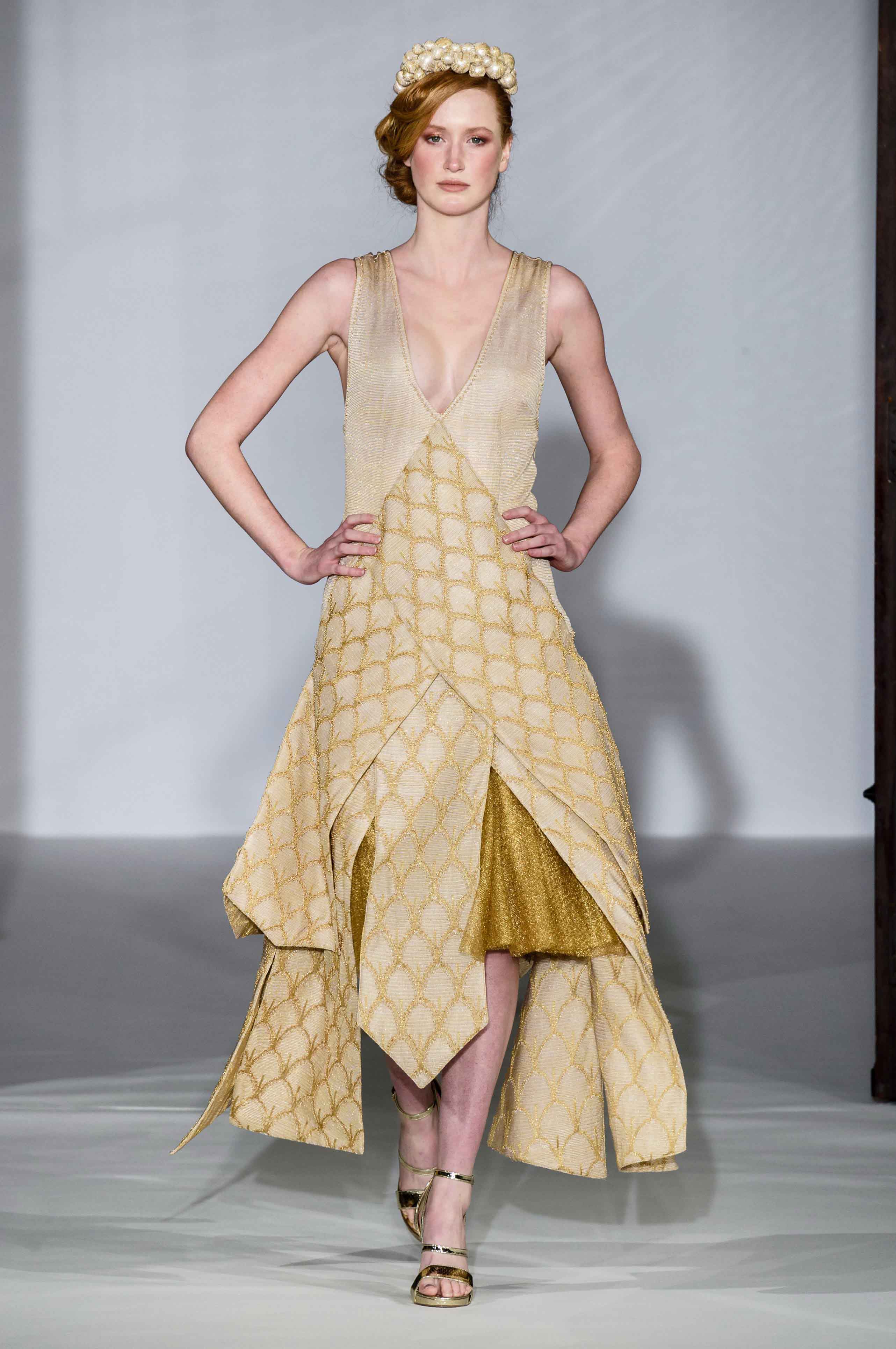 Maria Aristidou’s Spring/Summer 2019 knit couture collection was quite the challenge. The inspiration for the pattern came from a single vintage arched door found during a walk inside the old city walls of Nicosia. The simplicity of the door’s facade, together with the complexity of the engineering behind it, gave rise to a series of design trials that lead to this fine timeless pattern for the fabrics of SS 2019 collection.
