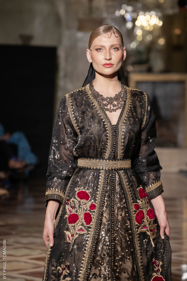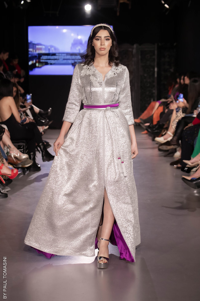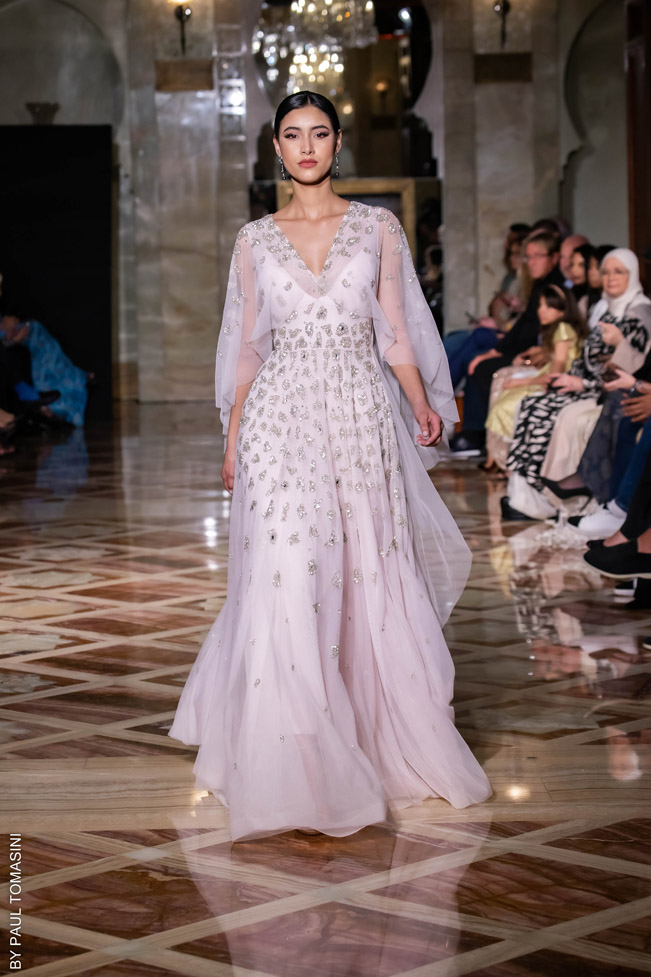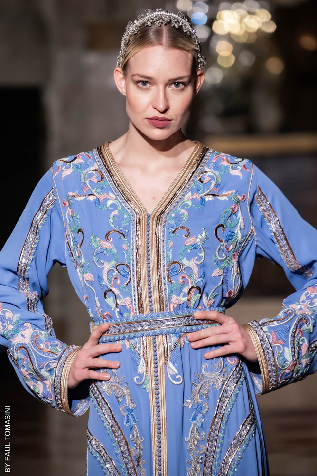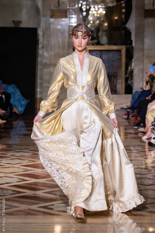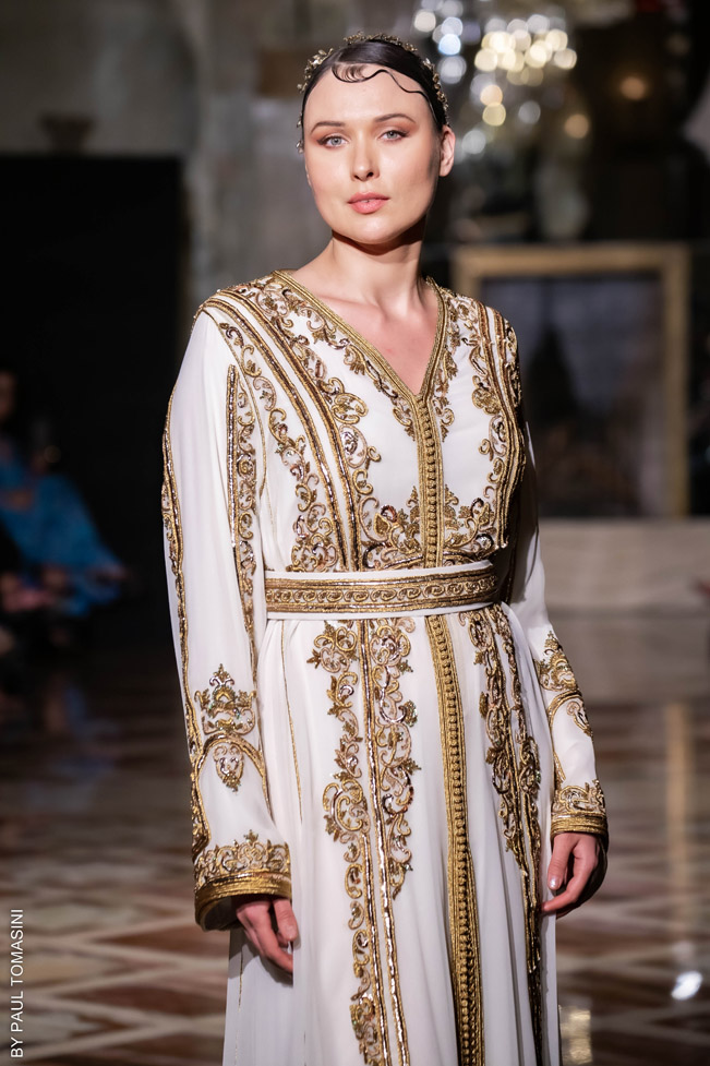 A contest is organized in partnership with the fashion schools: Ateliers Chardon Savard (Paris), Escom bel (Fez) and Academia Moda de Nazareth, under the attentive eye of a jury of great value persons such as Said Mahrouf (designer), Christophe Guillarmé, (designer), Saher Okal (designer), Olfi Yasmina (Fashion Mintea), influencer, Khadija Dénia (Journalist, My luxury Life), Marzio Nocera (Fashion Channel), Angela Donova (Journalist), the winner will participate to the next edition of the Oriental Fashion Show in Paris.